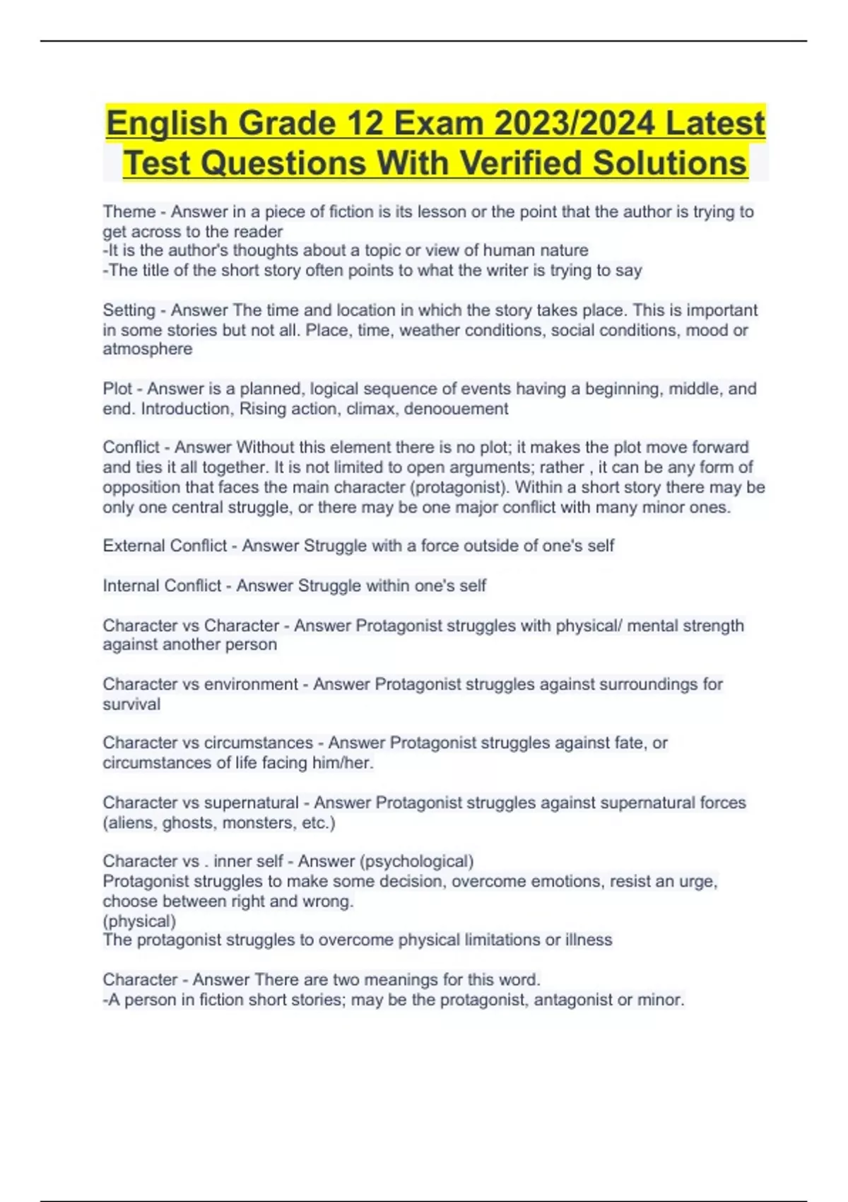 English Grade 12 Exam 2023/2024 Latest Test Questions With Verified Solutions