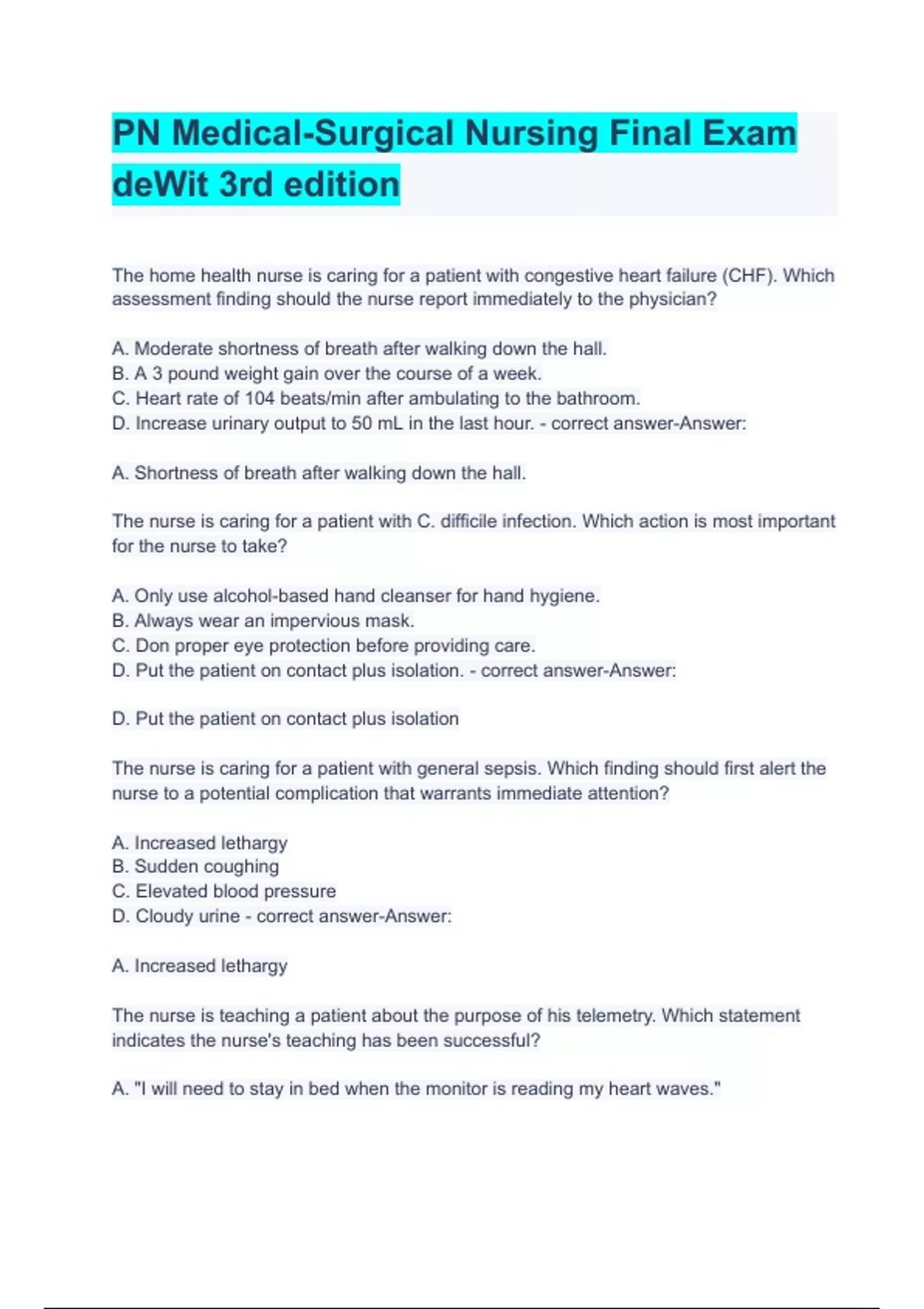 PN Medical-Surgical Nursing Final Exam deWit 3rd edition (GRADED A+)2023/2024
