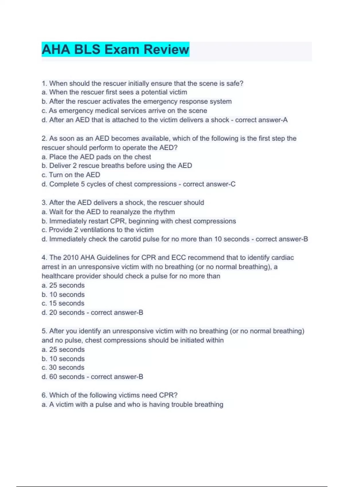 Exam of 11 pages for the course AHA BLS Exa at AHA BLS Exa (AHA BLS Exam Review)