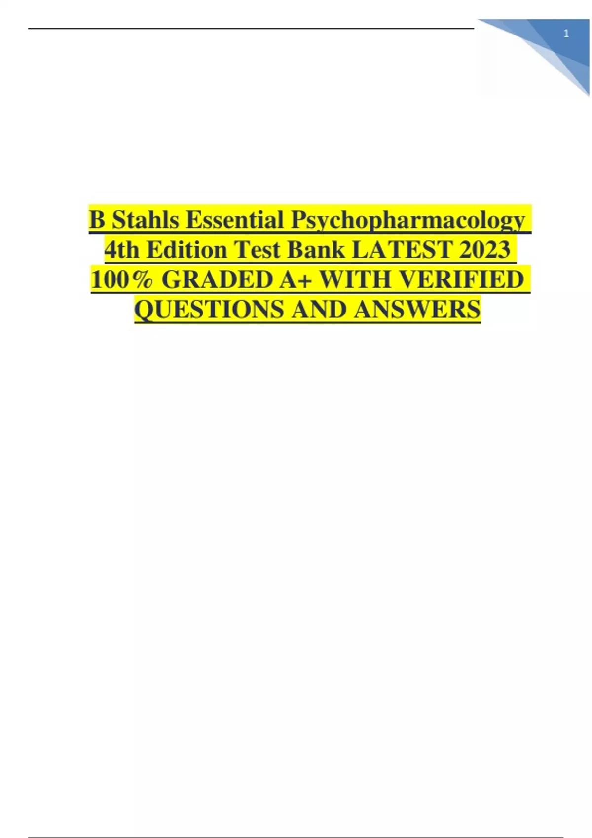 Summary B Stahls Essential Psychopharmacology 4th Edition Test Bank LATEST 2023 100% GRADED A+ WITH VERIFIED QUESTIONS AND ANSWERS GRADED A+