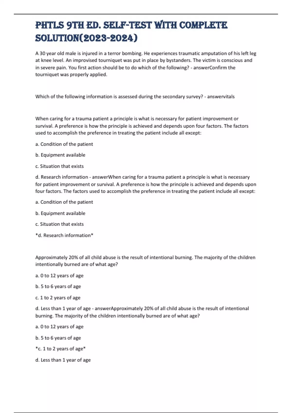 PHTLS 9th Ed. Self-test with complete solution()