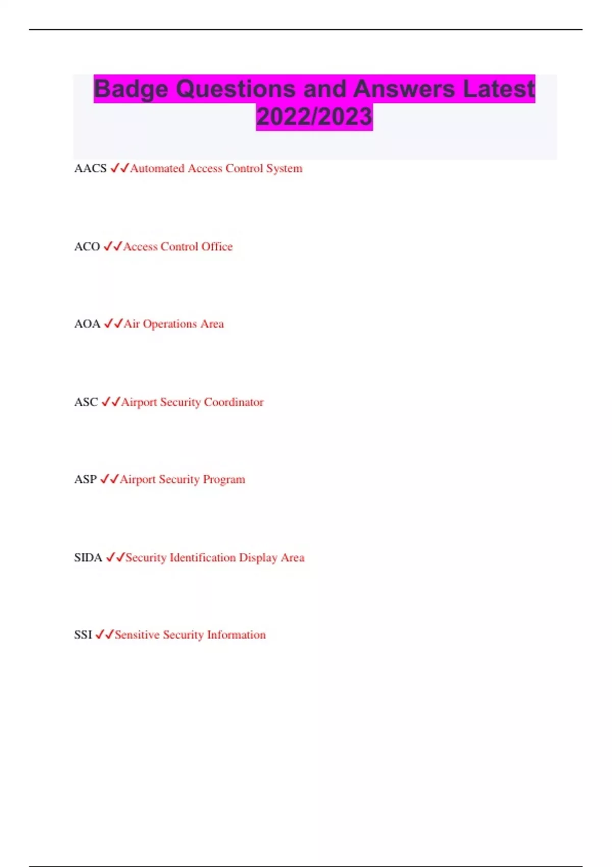 ACS Automated Access Control System ACO Access Control Office AOA Air Operations Area ASC Airport Security Coordinator ASP Airport Security Program SIDA Security Identification Display Area SSI Sensitive Security Information
