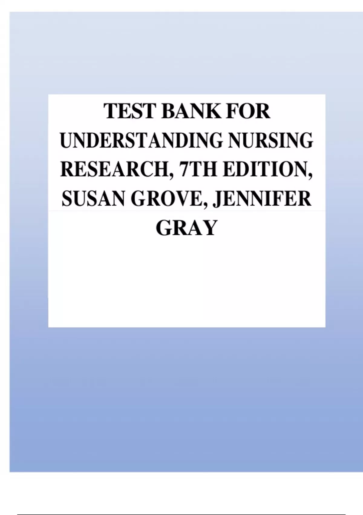 TEST BANK FOR UNDERSTANDING NURSING RESEARCH, 7TH EDITION, SUSAN GROVE, JENNIFER GRAY