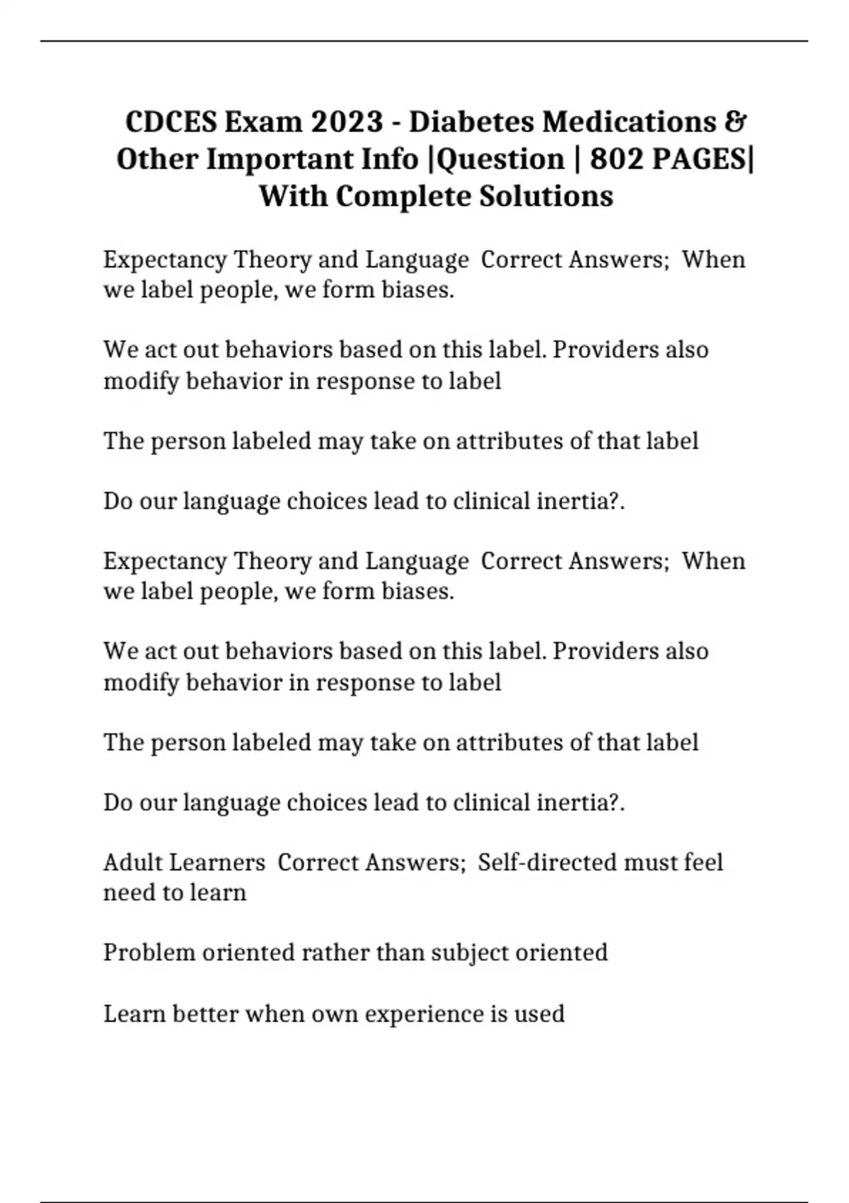 CDCES Exam 2023 - Diabetes Medications & Other Important Info |Question | 802 PAGES| With Complete Solutions