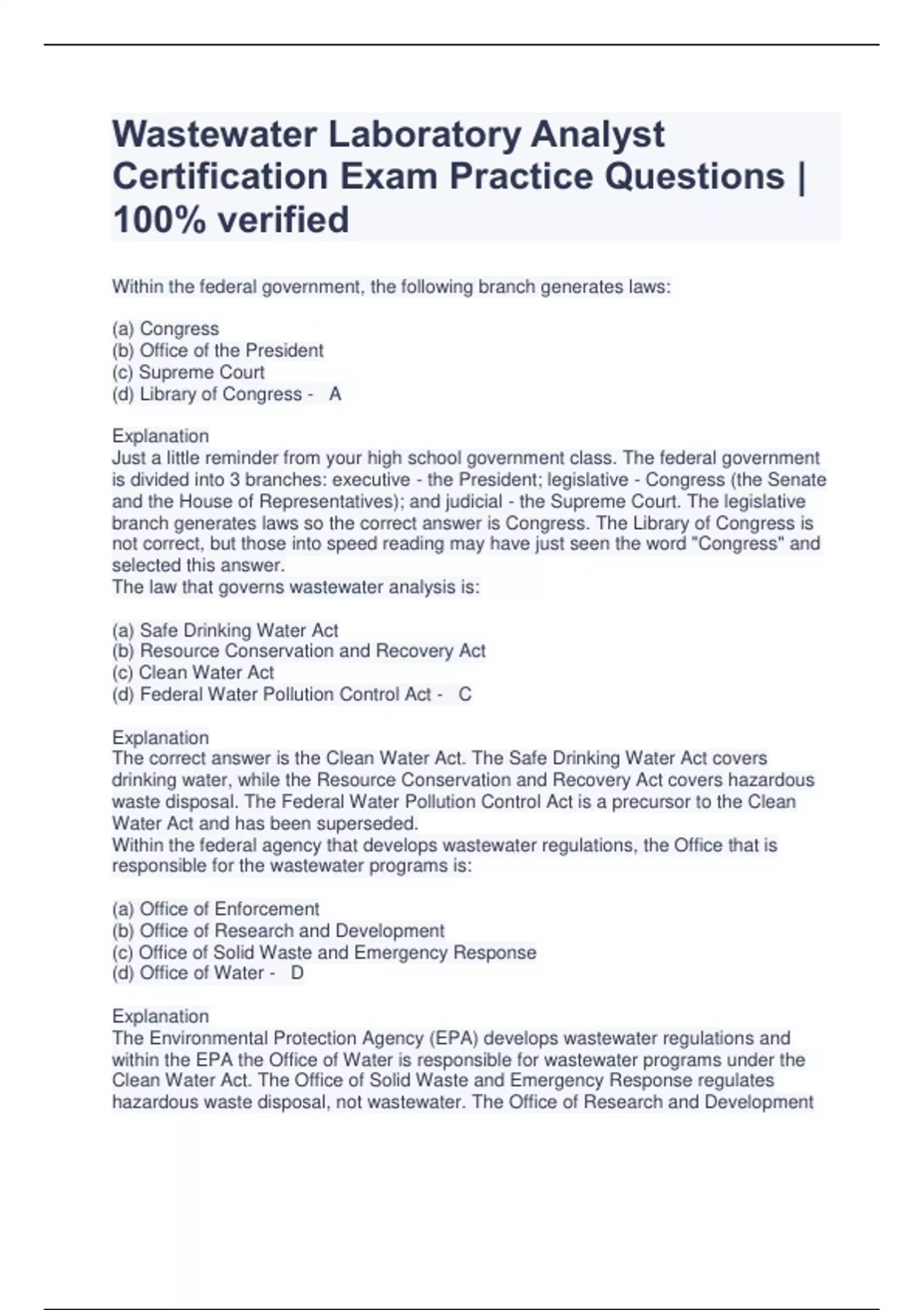 Wastewater Laboratory Analyst Certification Exam Practice Questions | 100% verified