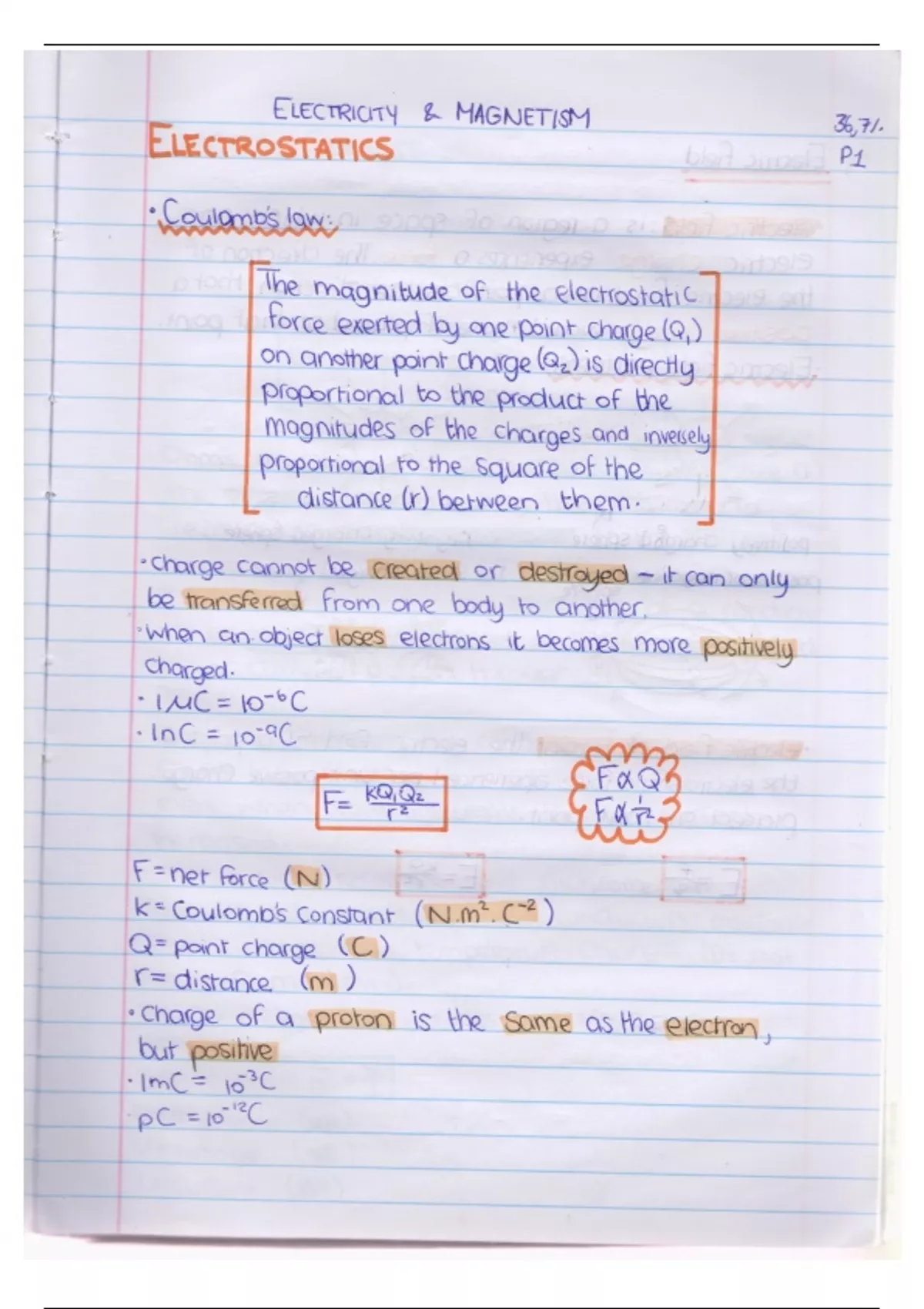 Matric Summary Notes. Electricity & Magnetism: Electrostatics. Grade 12 Class Notes