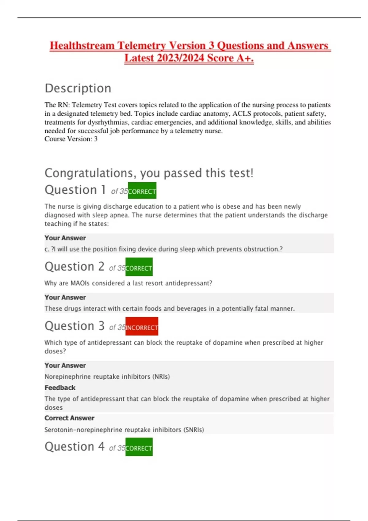 Healthstream Telemetry Version 3 Questions and Answers Latest 2023/2024 Score A+.