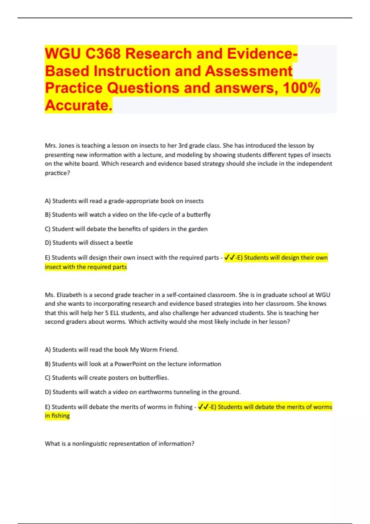 WGU C368 Research and Evidence-Based Instruction and Assessment Practice Questions and answers, 100% Accurate