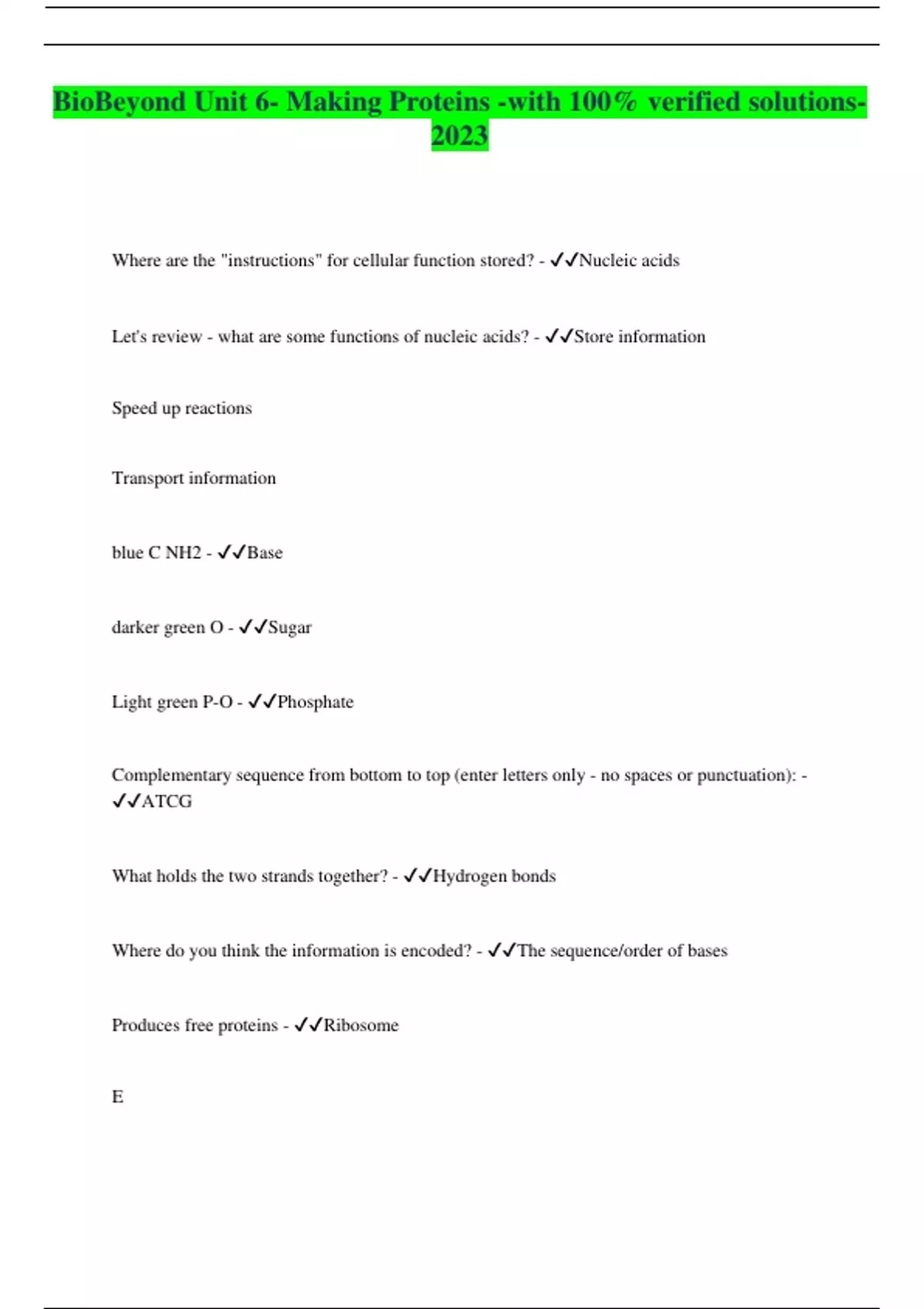 BioBeyond Unit 6- Making Proteins -with 100% verified solutions-2023