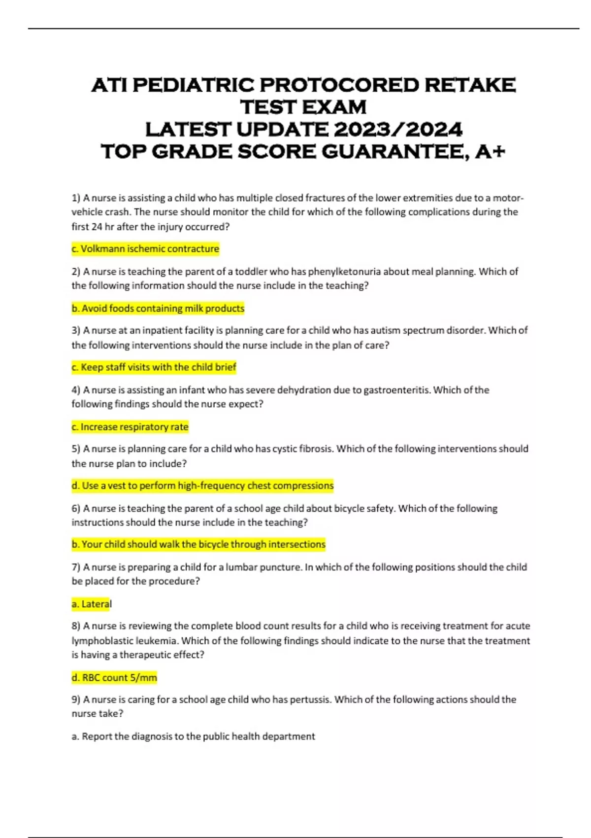 ATI PEDIATRIC PROTOCORED RETAKE TEST EXAM LATEST UPDATE 2023/2024 TOP GRADE SCORE GUARANTEE, A+