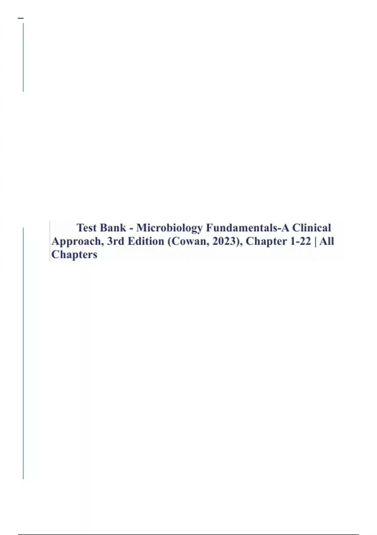 Test Bank - Microbiology Fundamentals-A Clinical Approach, 3rd Edition (Cowan, 2023), Chapter 1-22 | All Chapters