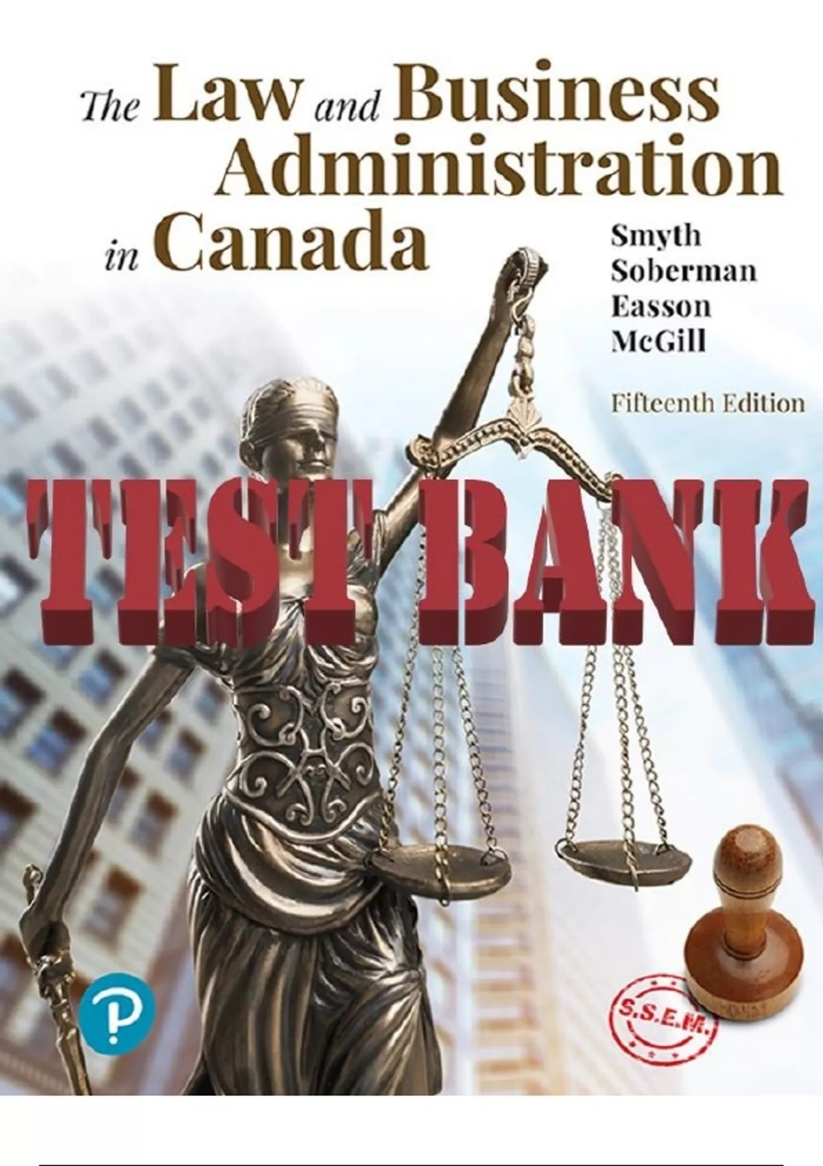 TEST BANK for Law and Business Administration in Canada, 15th Edition by J. Smyth, Dan Soberman, A. Easson and Shelley McGill