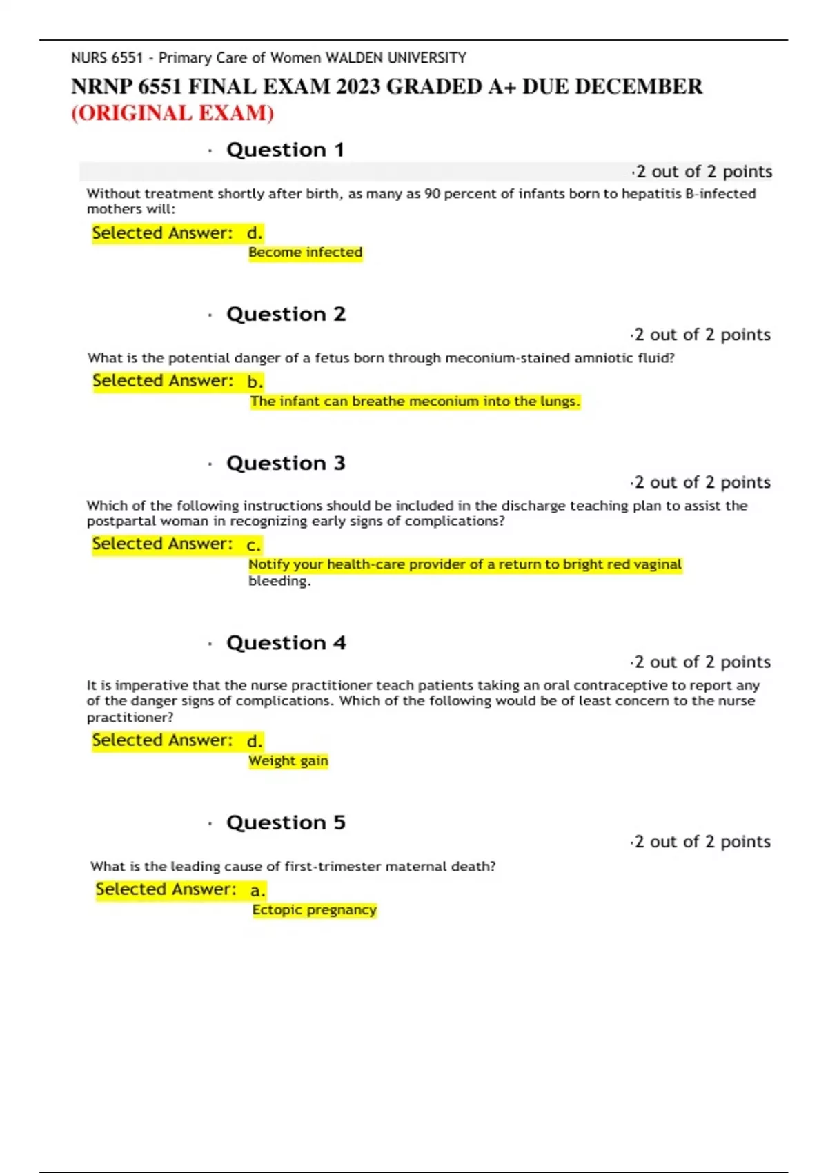 NRNP 6551 FINAL EXAM 2023 GRADED A+ DUE DECEMBER (ORIGINAL EXAM)