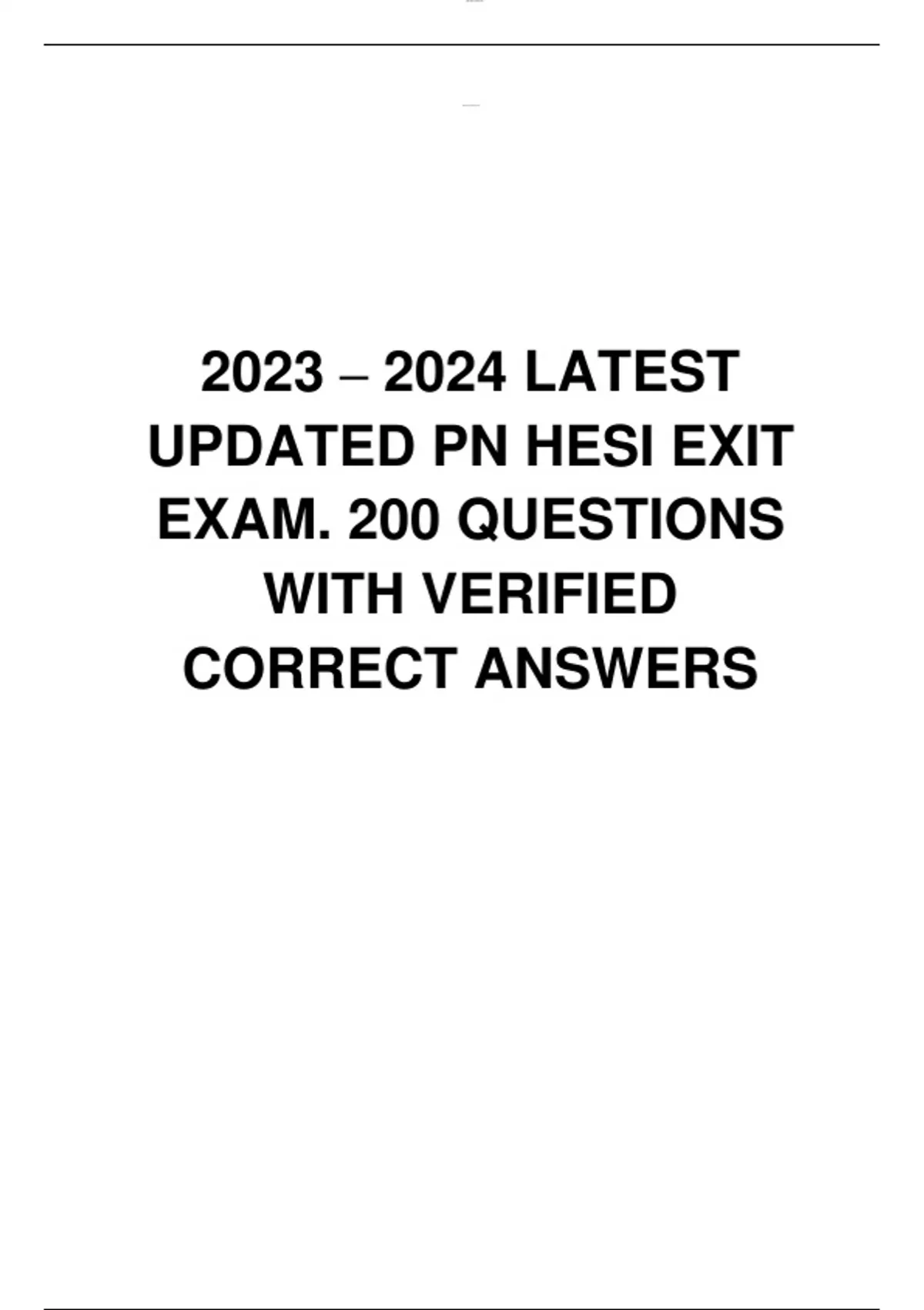 2023 – 2024 LATEST UPDATED PN HESI EXIT EXAM. 200 QUESTIONS WITH VERIFIED CORRECT ANSWERS