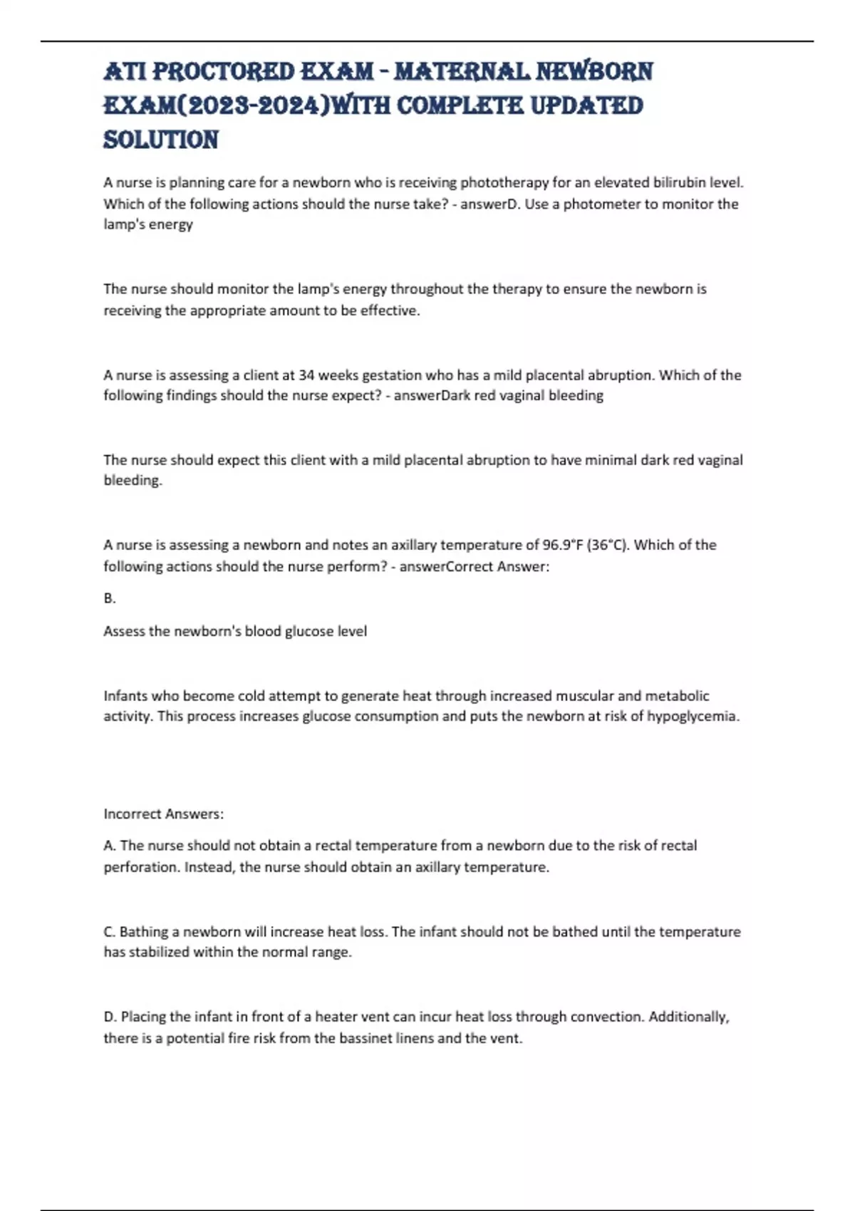 ATI Fundamentals Proctored Exam Study h correct questions and answers 2024/2025