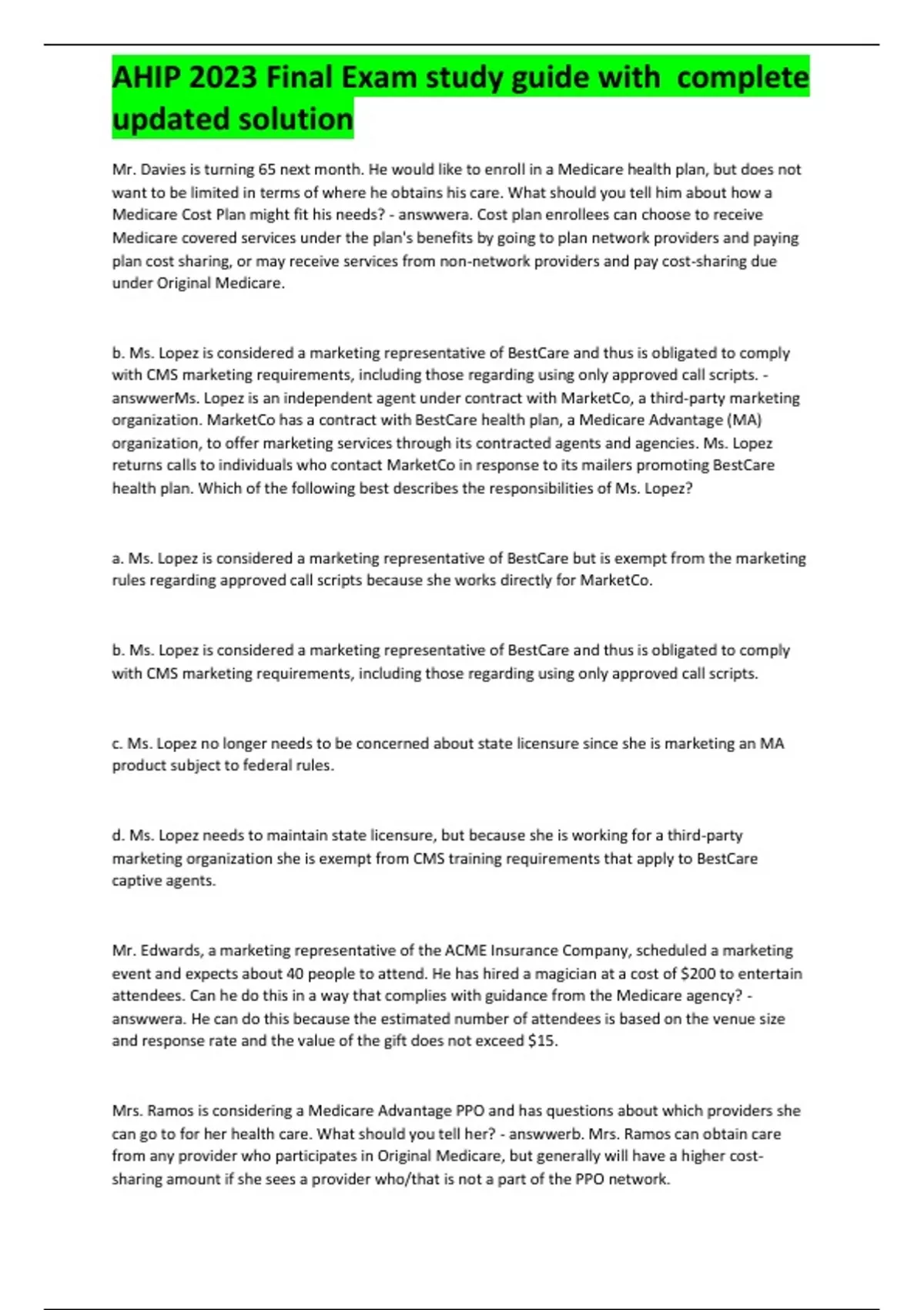 AHIP 2023 Final Exam study guide with complete updated solution