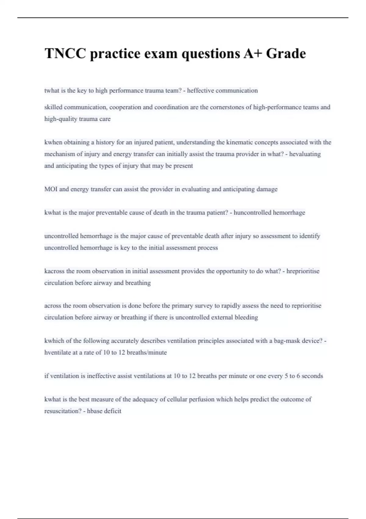 TNCC practice exam questions