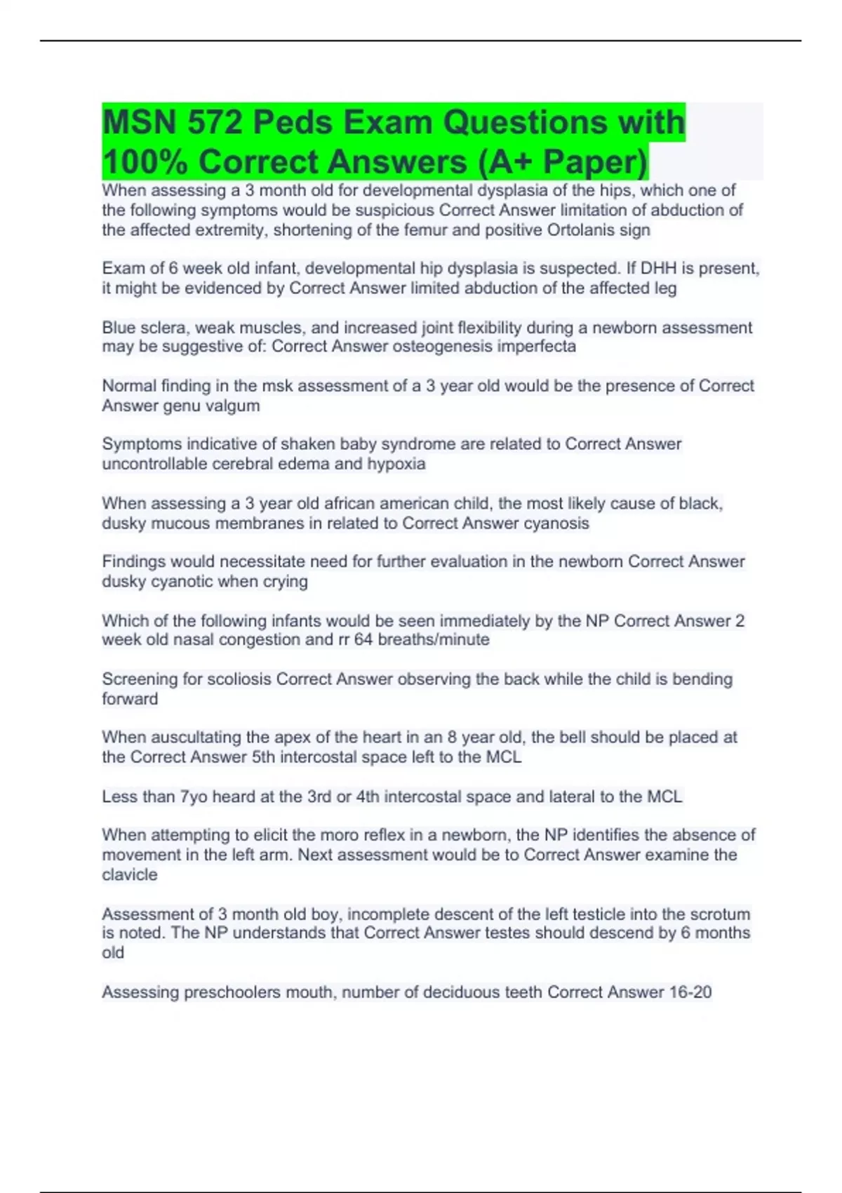 MSN 572 Peds Exam Questions with 100% Correct Answers (A+ Paper)