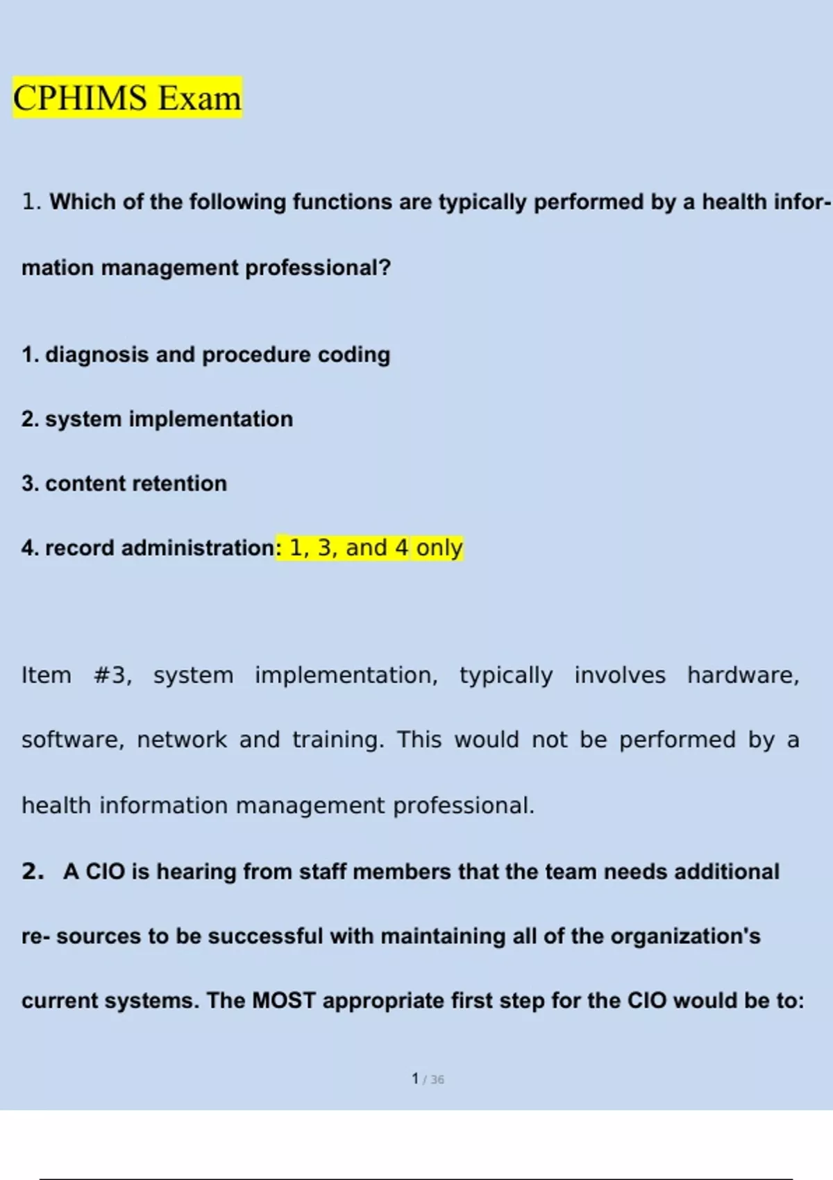CPHIMS EXAM 2025 Newest Updated Questions and Answers (Verified Answers)