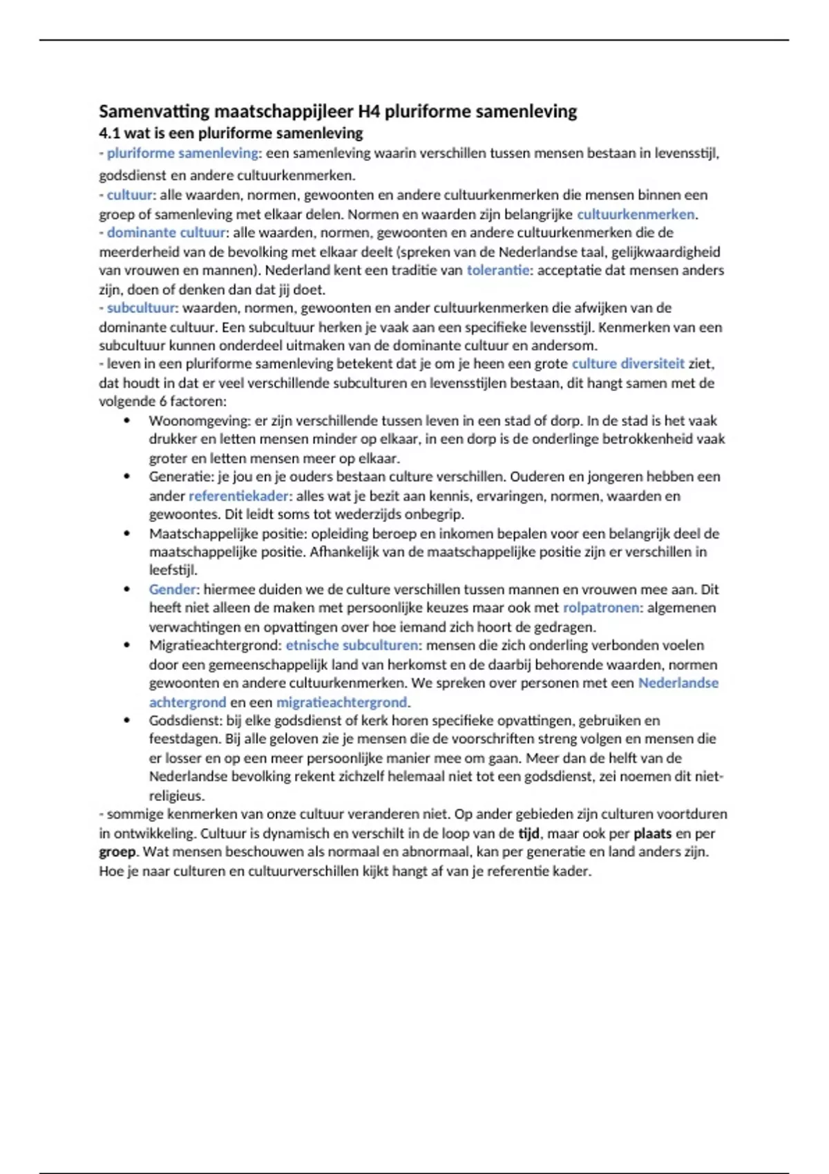 Samenvatting maatschappijleer H4 pluriforme samenleving