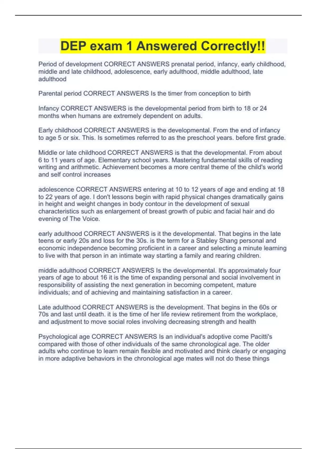 DEP exam 1 Answered Correctly