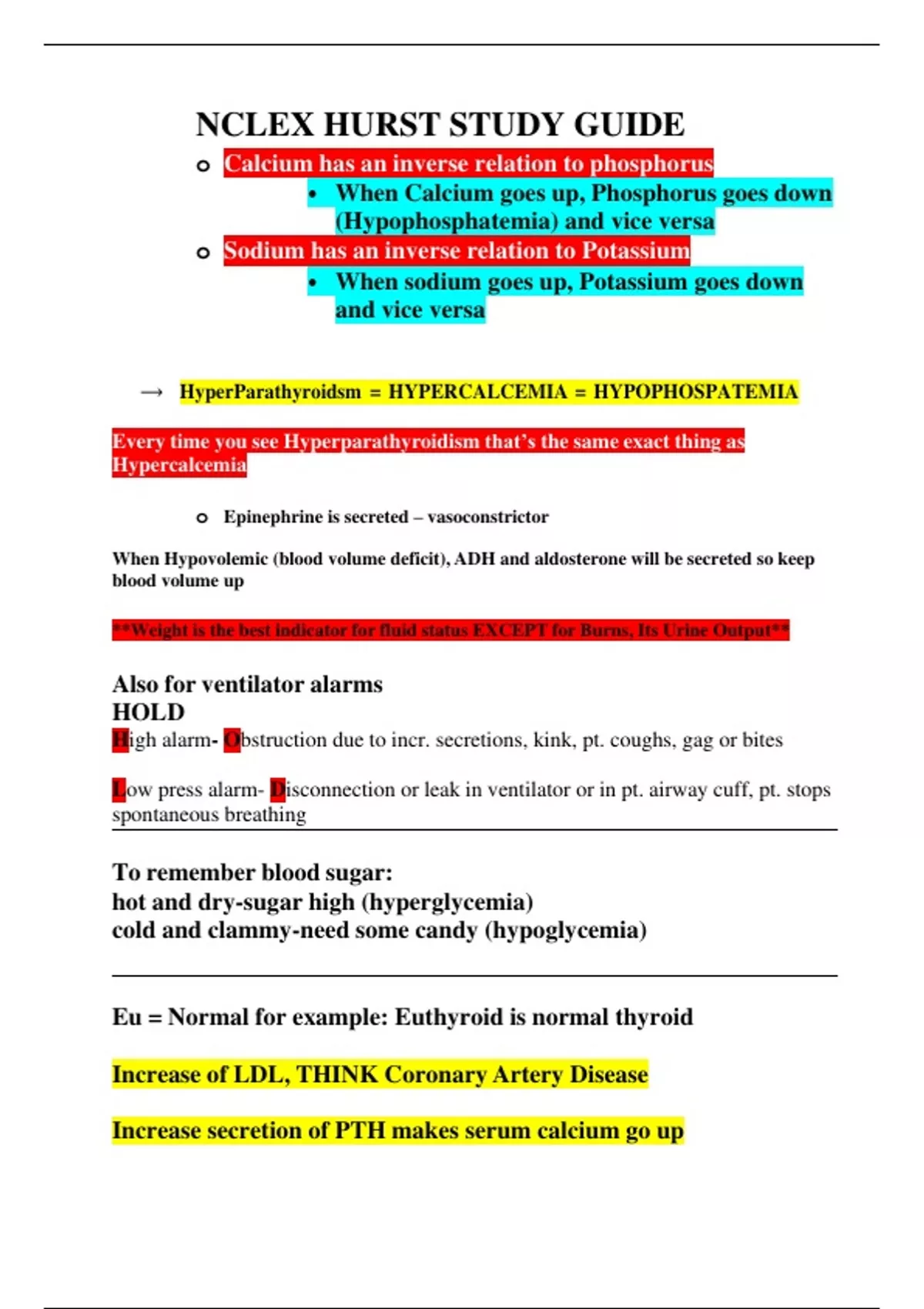 NCLEX HURST STUDY GUIDE o Calcium has an inverse relation to phosphorus