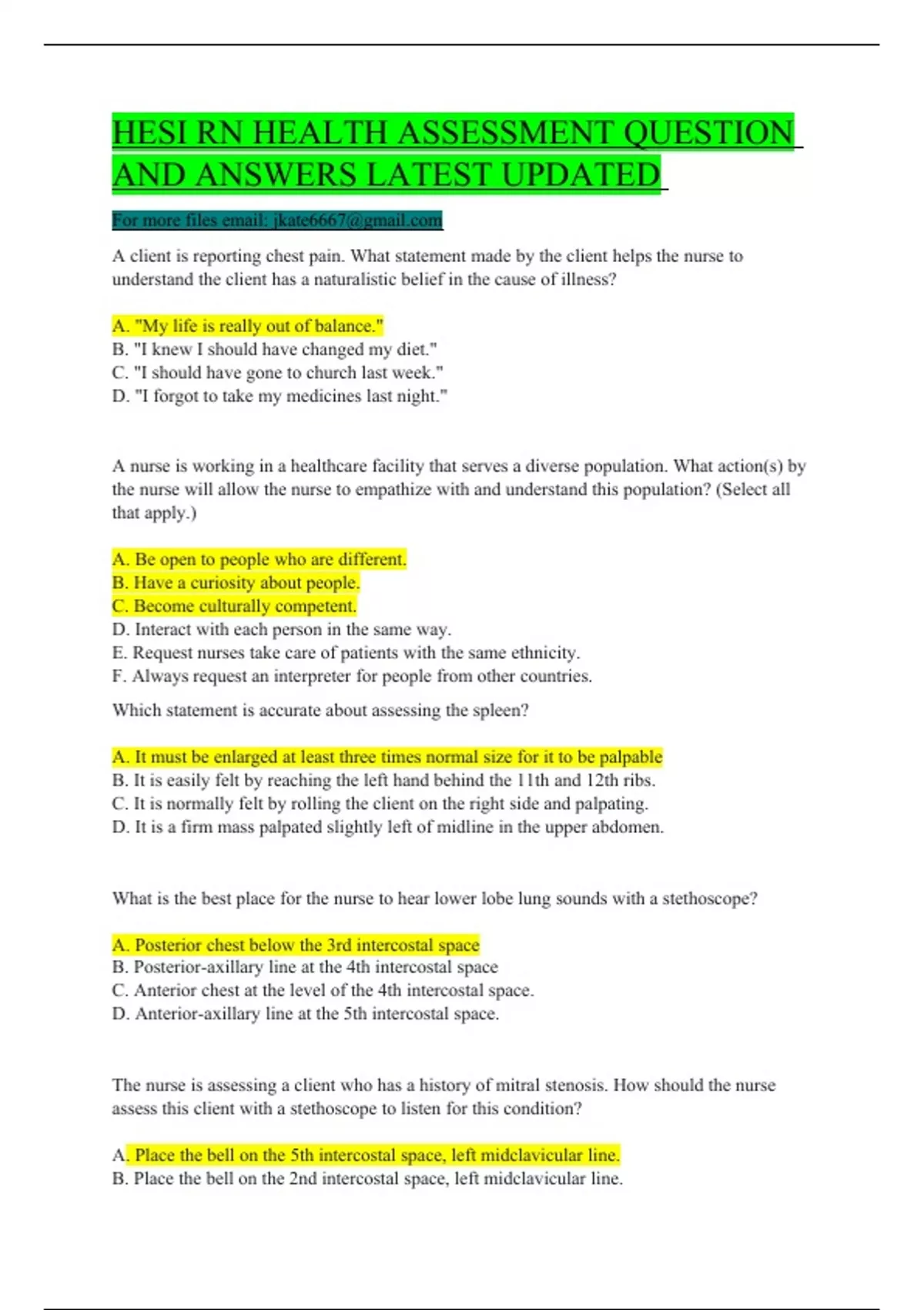 HESI RN HEALTH ASSESSMENT QUESTION AND ANSWERS LATEST UPDATED