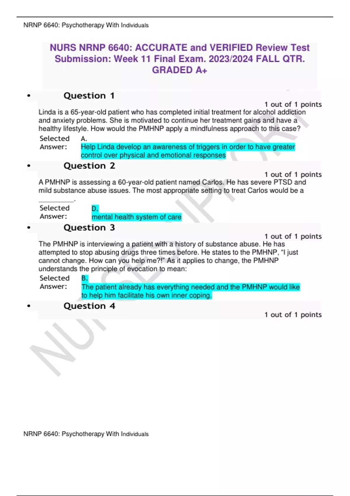 NRNP 6640: ACCURATE and VERIFIED Review Test Submission: Week 11 Final Exam. 2023/2024 FALL QTR. GRADED A+