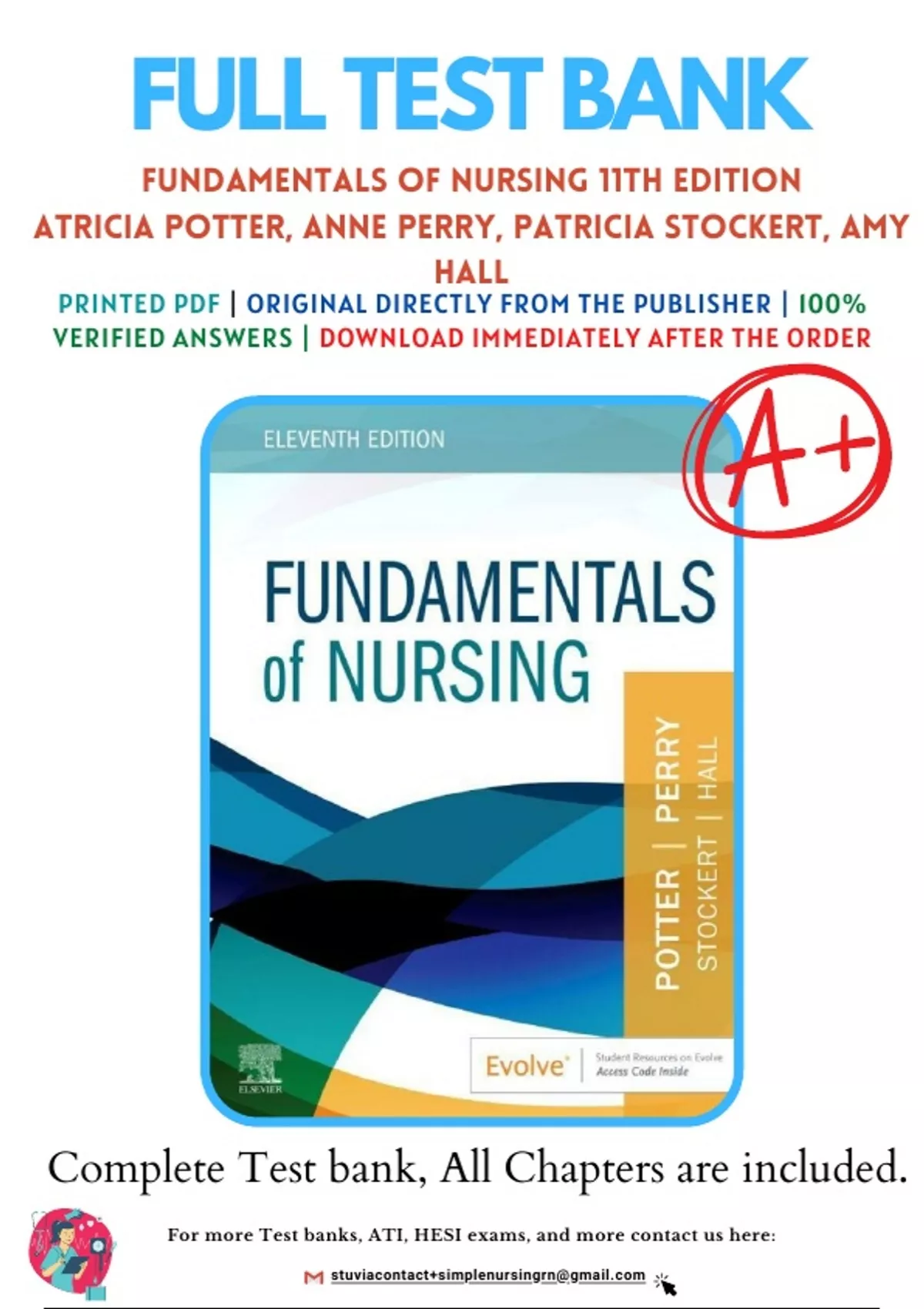 Test Bank For Fundamentals of Nursing 11th Edition Potter Perry (), 9780323810340, Chapter 1-50 All Chapters with Answers and Rationals .