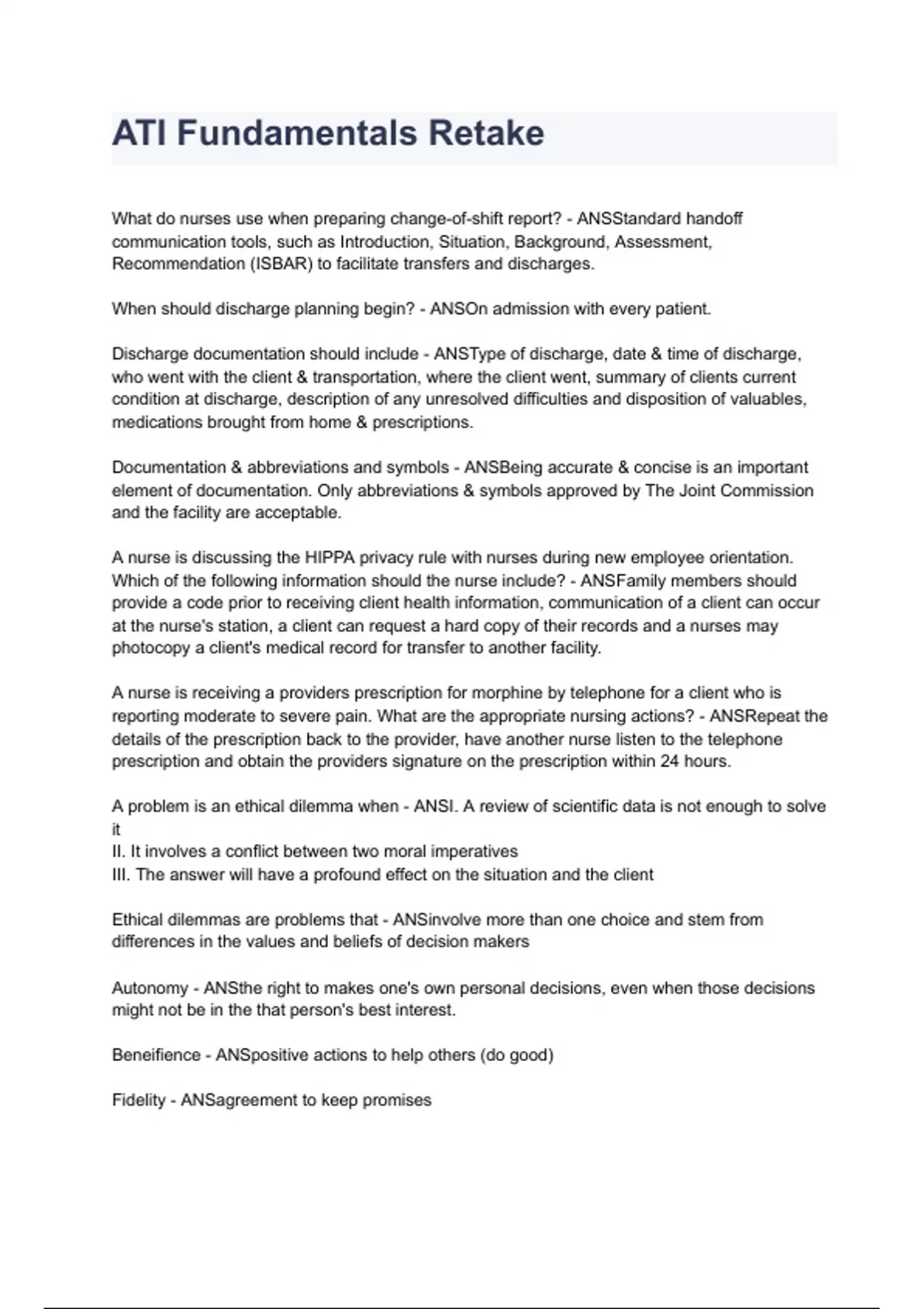 What do nurses use when preparing change-of-shift report? - ANSStandard handoff