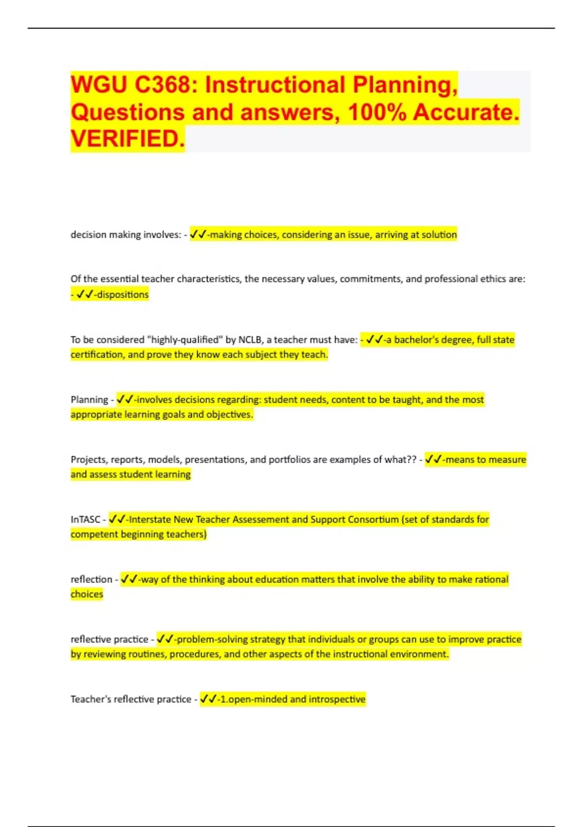 WGU C368: Instructional Planning, Questions and answers, 100% Accurate. VERIFIED.