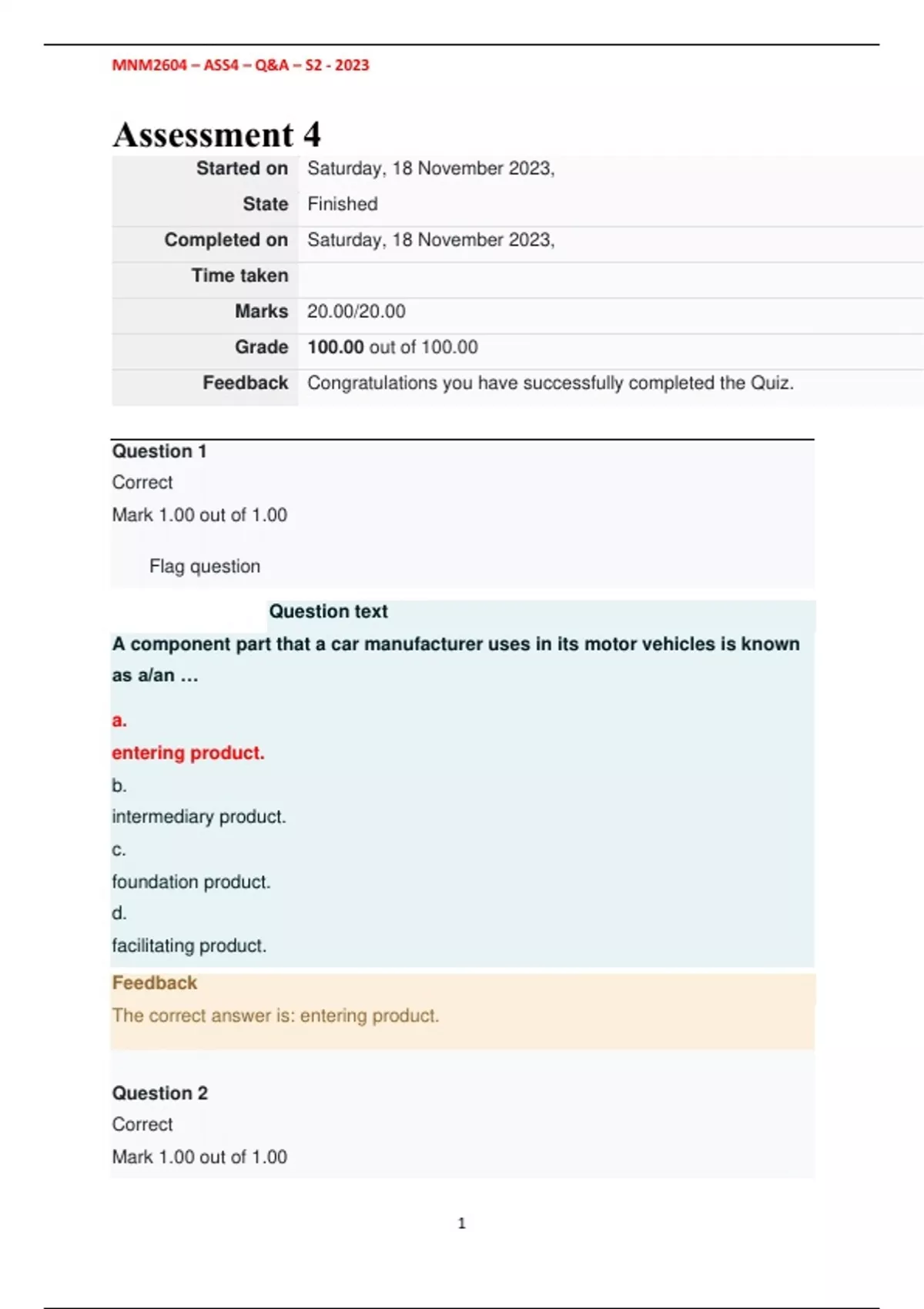 MNM2604 – ASS4 – Q&A – S2 - 2023