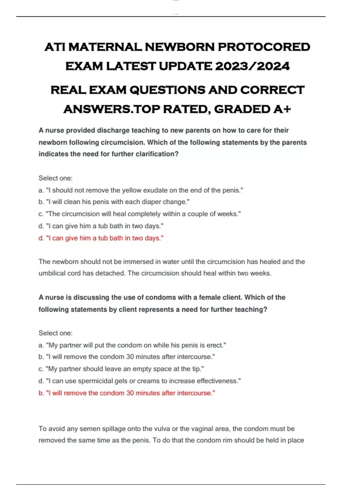 ATI MATERNAL NEWBORN PROTOCORED EXAM LATEST UPDATE 2023/2024 REAL EXAM QUESTIONS AND CORRECT ANSWERS.TOP RATED, GRADED A+