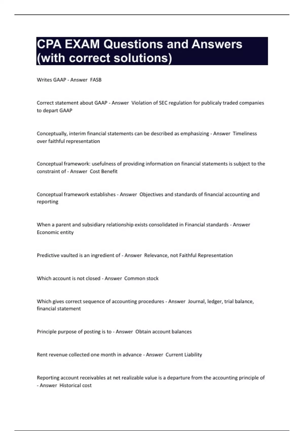CPA EXAM Questions and Answers (with correct solutions)