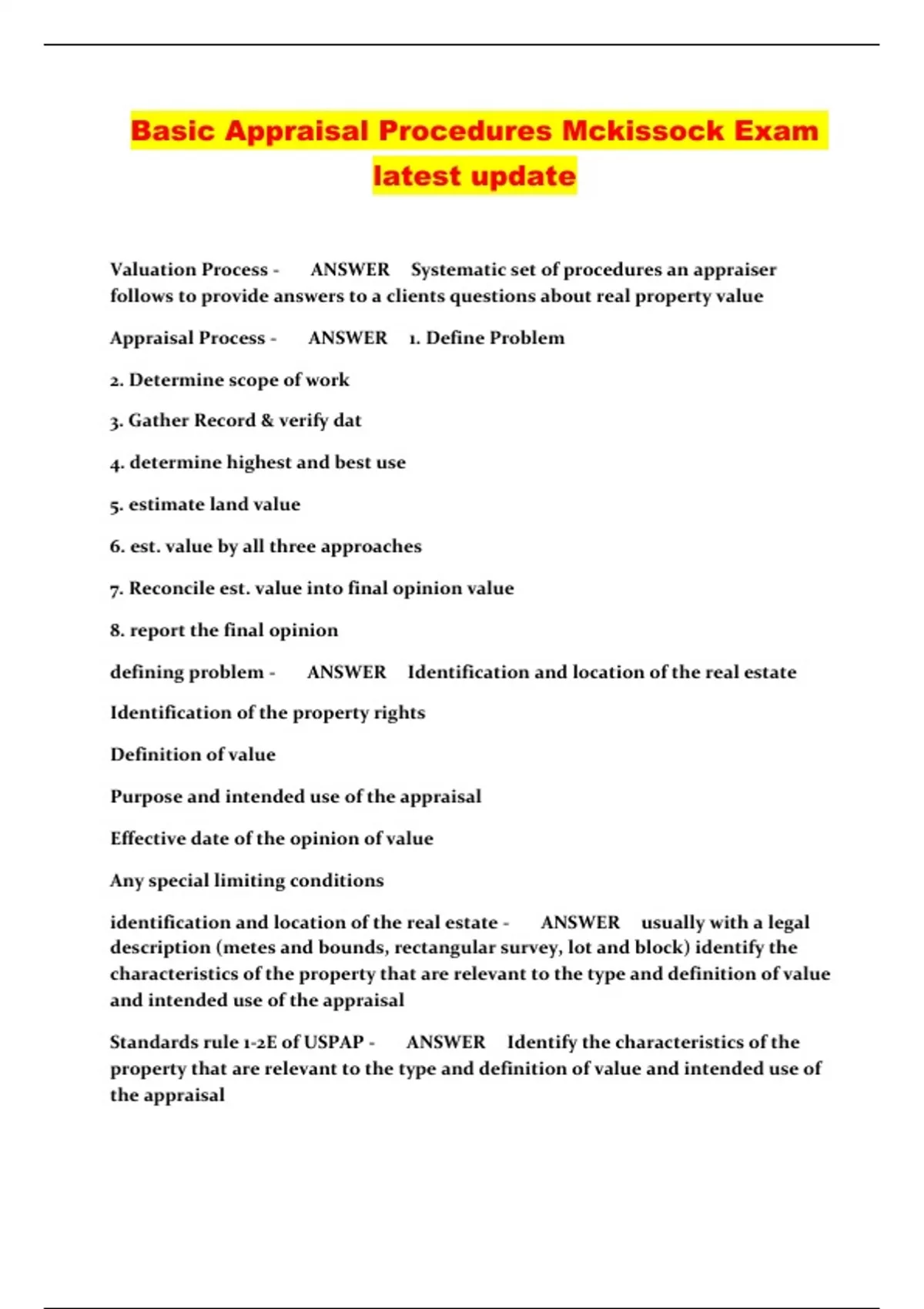 Basic Appraisal Procedures Mckissock Exam latest update...