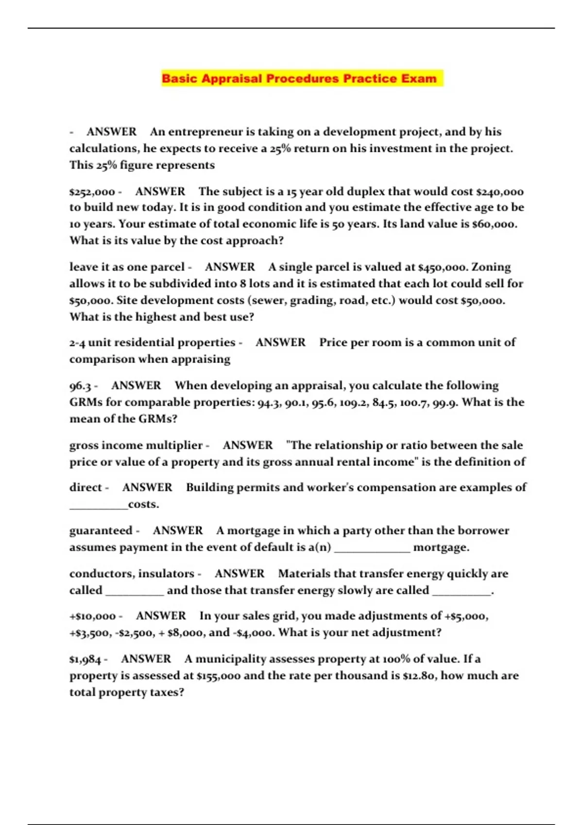 Basic Appraisal Procedures Practice Exam ...
