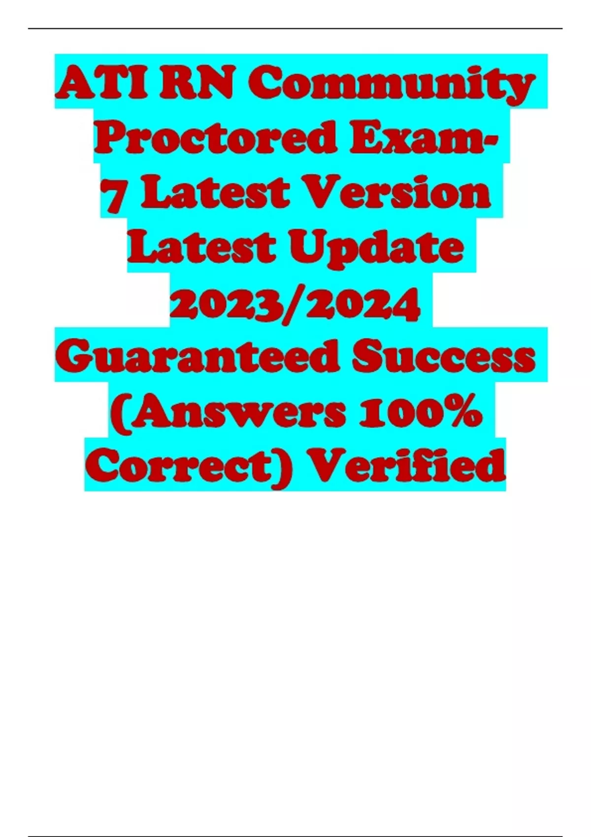 ATI RN Community Proctored Exam- 7 Latest Version Latest Update 2023/2024 Guaranteed Success (Answers 100% Correct) Verified ATI RN Community Proctored Exam- 7 Latest Version Latest Update 2023/2024 Guaranteed Success (Answers 100% Correct) Verified