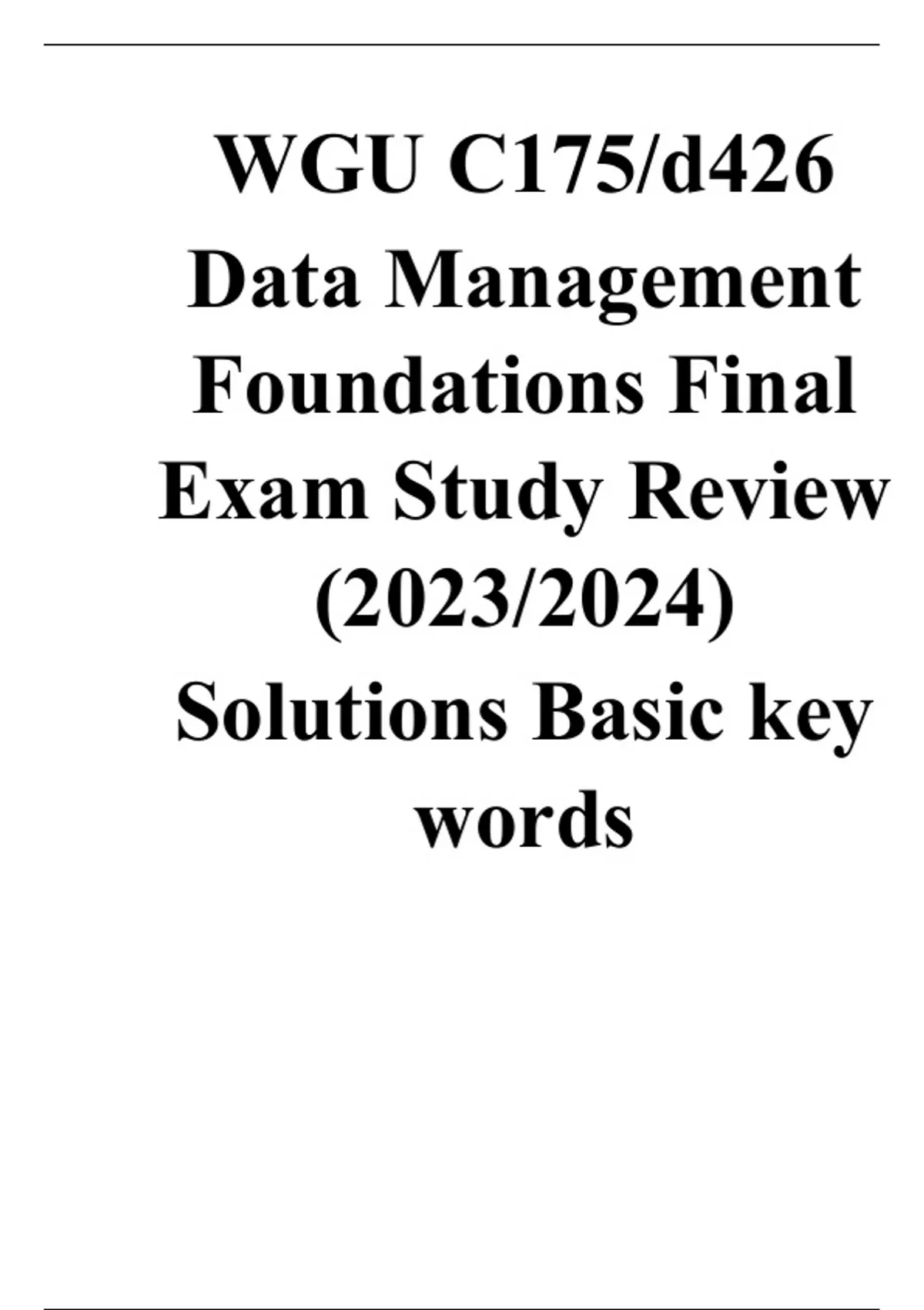 WGU C175/d426 Data Management Foundations Final Exam Study Review (2023/2024) Solutions Basic key words