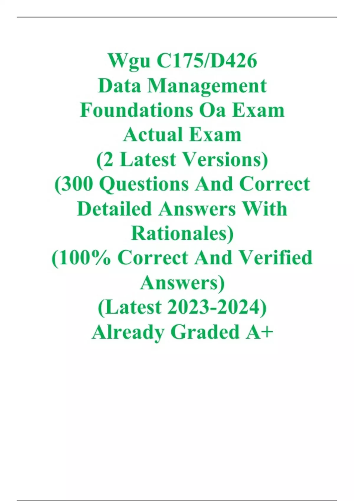 Wgu C175/D426 Data Management Foundations Oa Exam Actual Exam (2 Latest Versions) (300 Questions And Correct Detailed Answers With Rationales) (100% Correct And Verified Answers) (Latest ) Already Graded A+