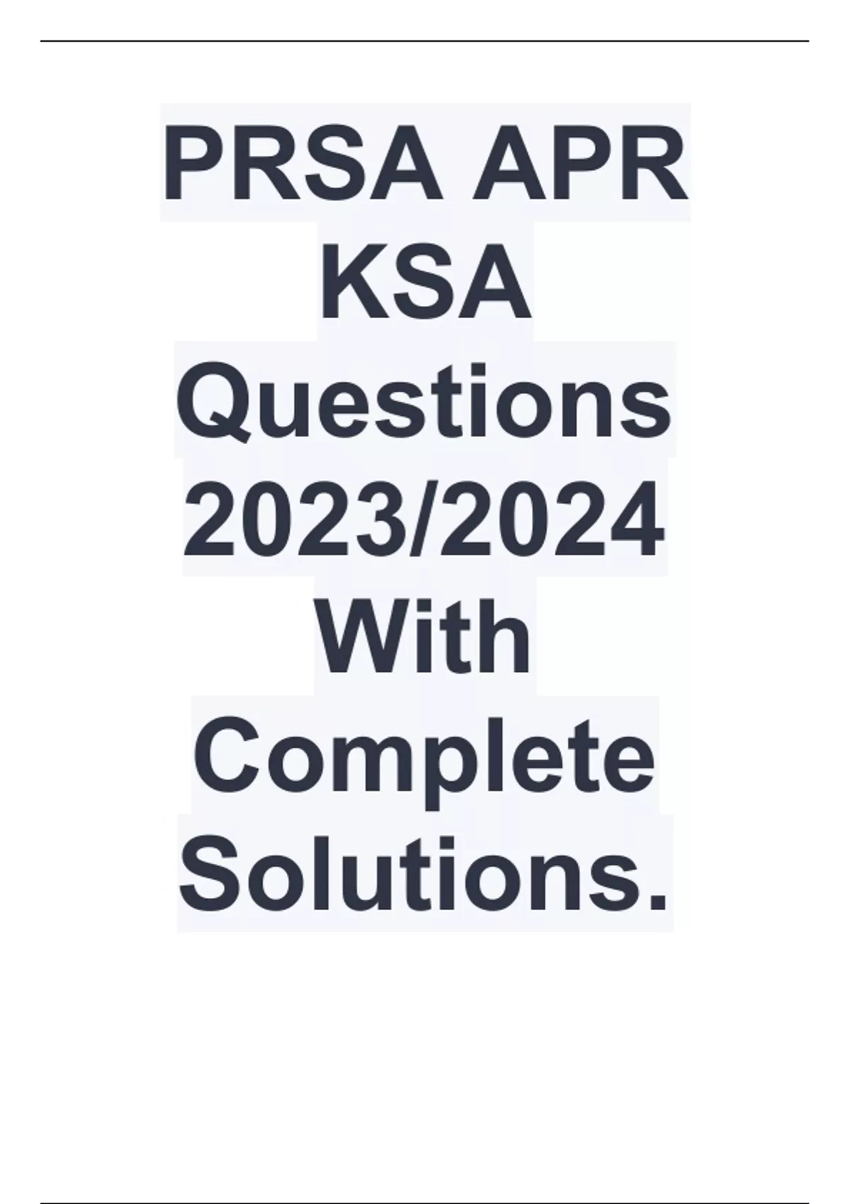 PRSA APR KSA Questions 2023/2024 With Complete Solutions.
