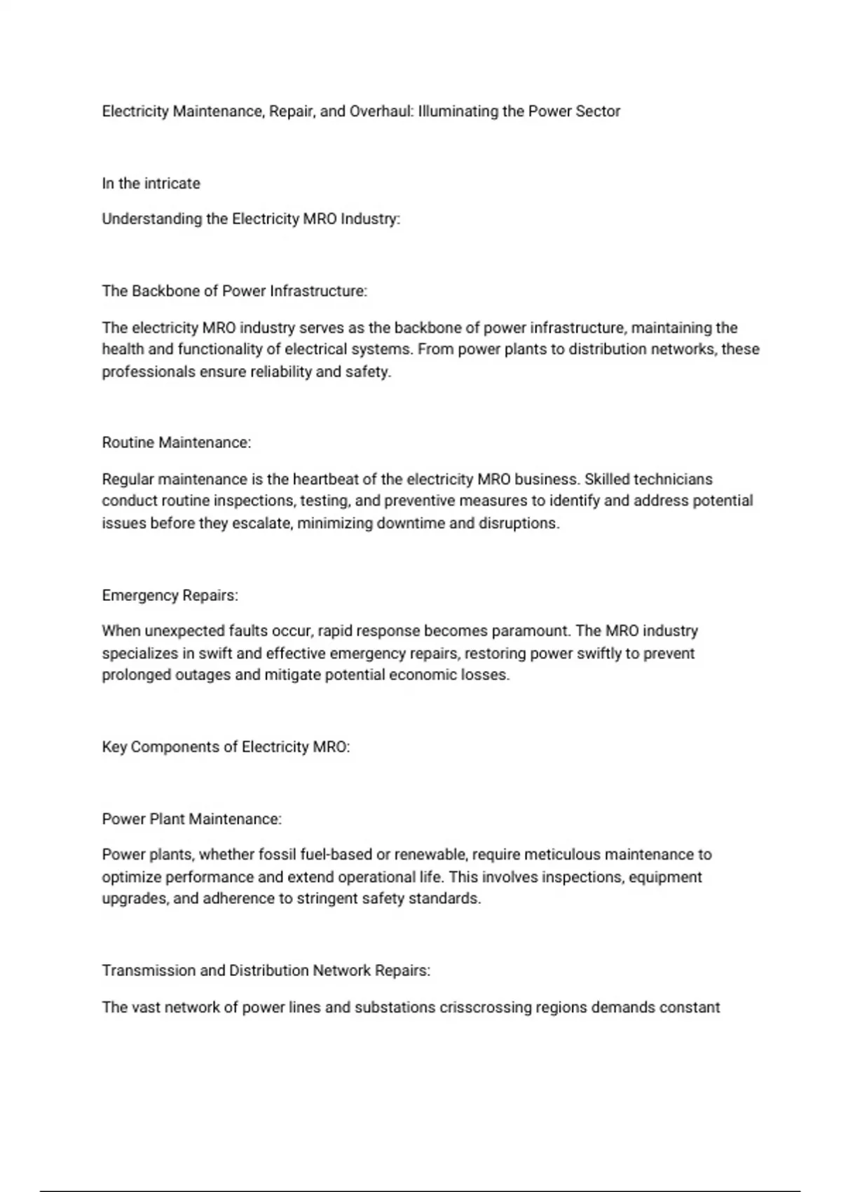 Electricity Maintenance, Repair, and Overhaul