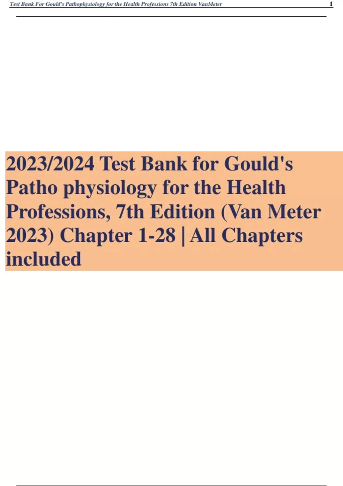 2023/2024 Test Bank for Gould's Patho physiology for the Health Professions, 7th Edition (Van Meter 2023) Chapter 1-28 | All Chapters included