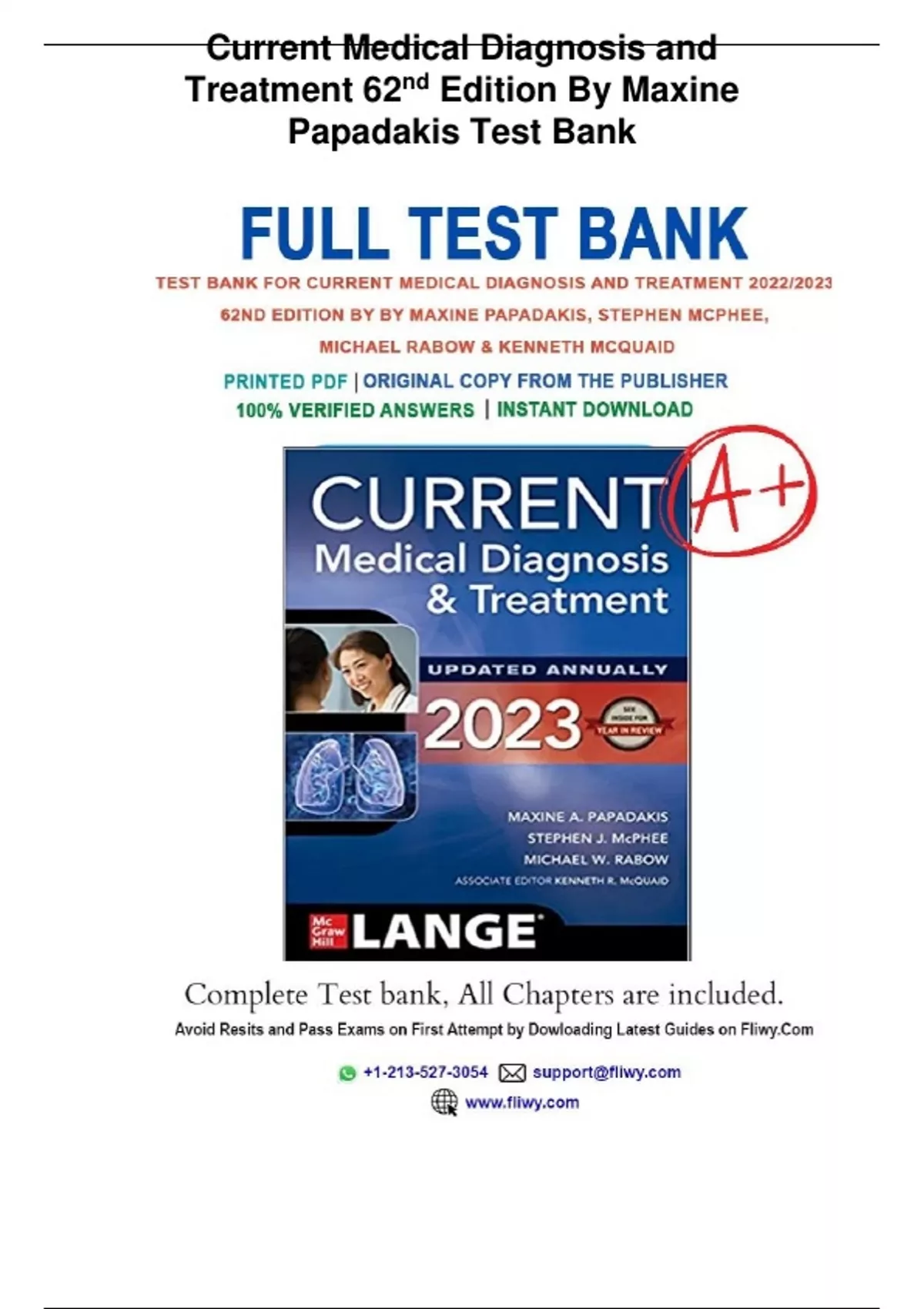 Current Medical Diagnosis and Treatment 62nd Edition By Maxine Papadakis Test Bank - Questions & Answers (Rated A+) 2023