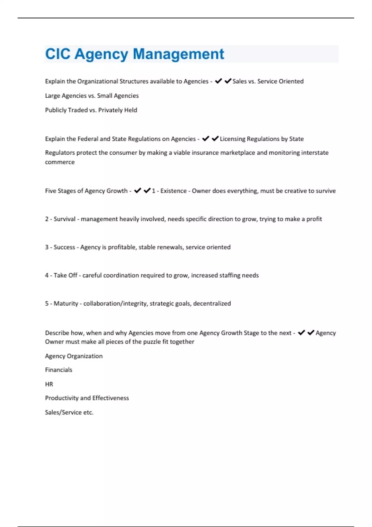 CIC Agency Management Questions With 100% Correct Answers.