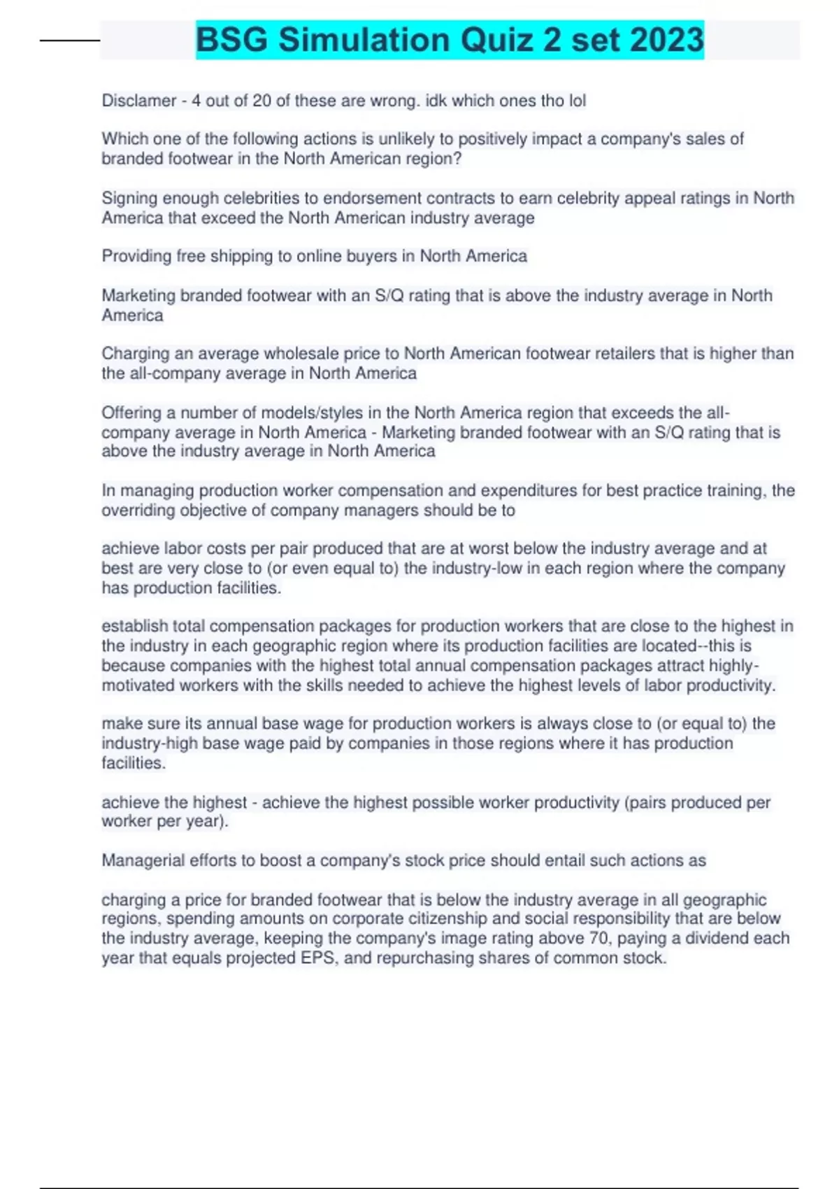 bsg simulation quiz 2 set 2023
