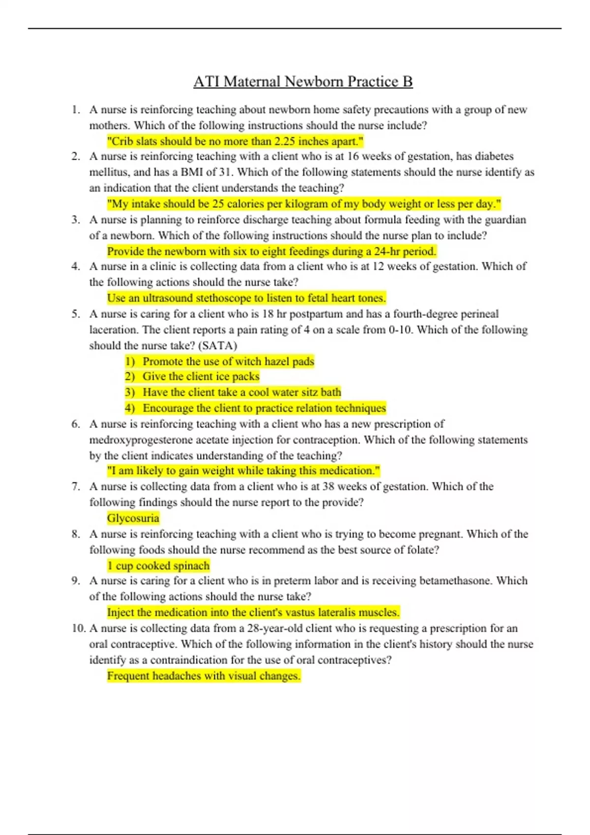This is the latest update of the ATI Maternal Newborn Practice B study guide