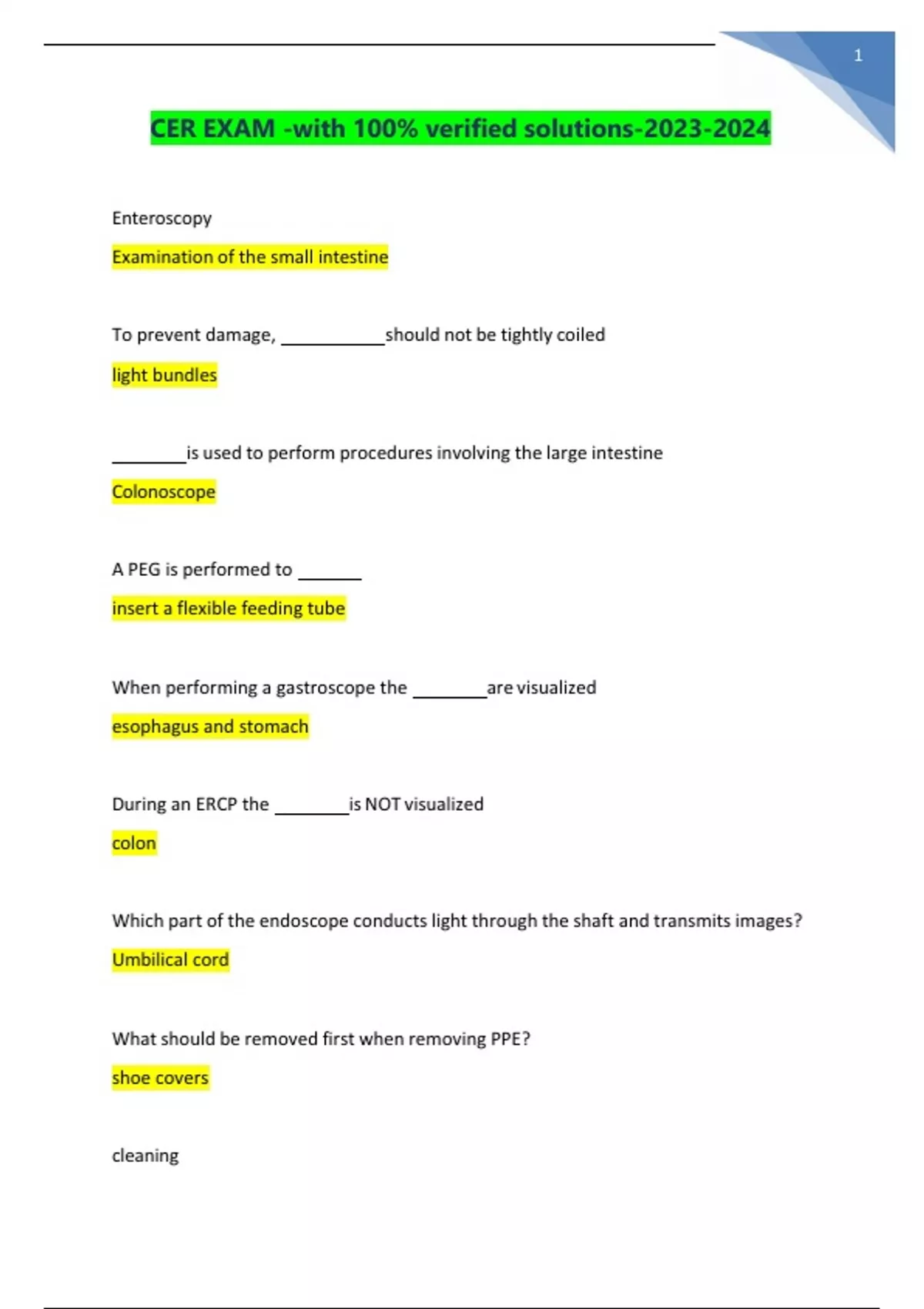 CER EXAM -with 100% verified solutions- GRADED A+