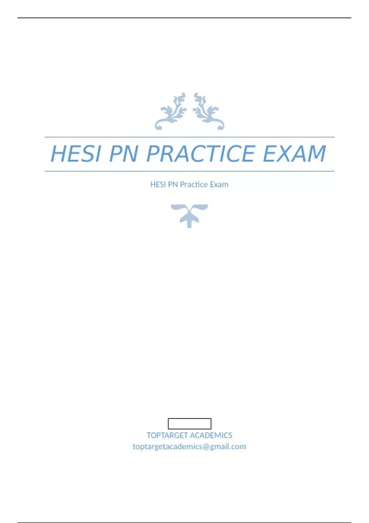 HESI PN LATEST 2023 PRACTICE EXAM| VERIFIED QUESTIONS AND ANSWERS| A+ GRADED