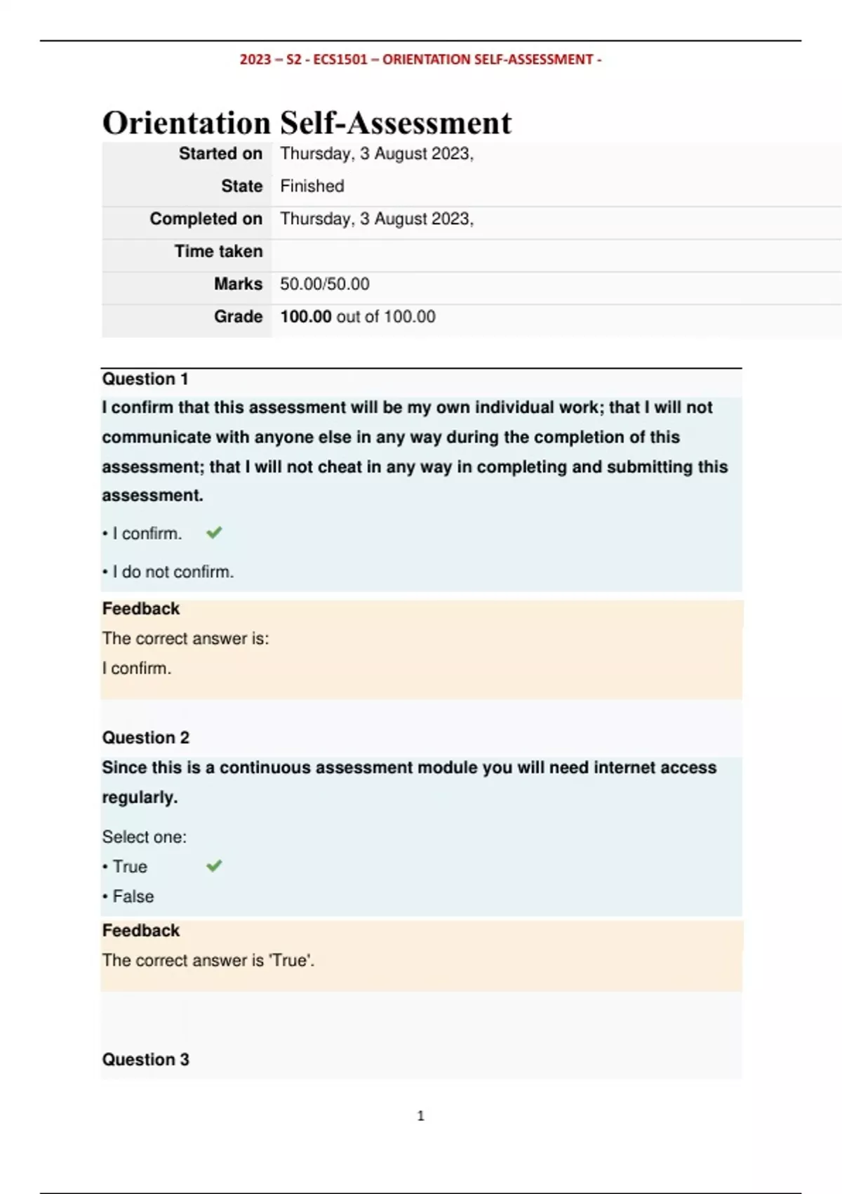 2023 – S2 - ECS1501 – ORIENTATION SELF-ASSESSMENT -