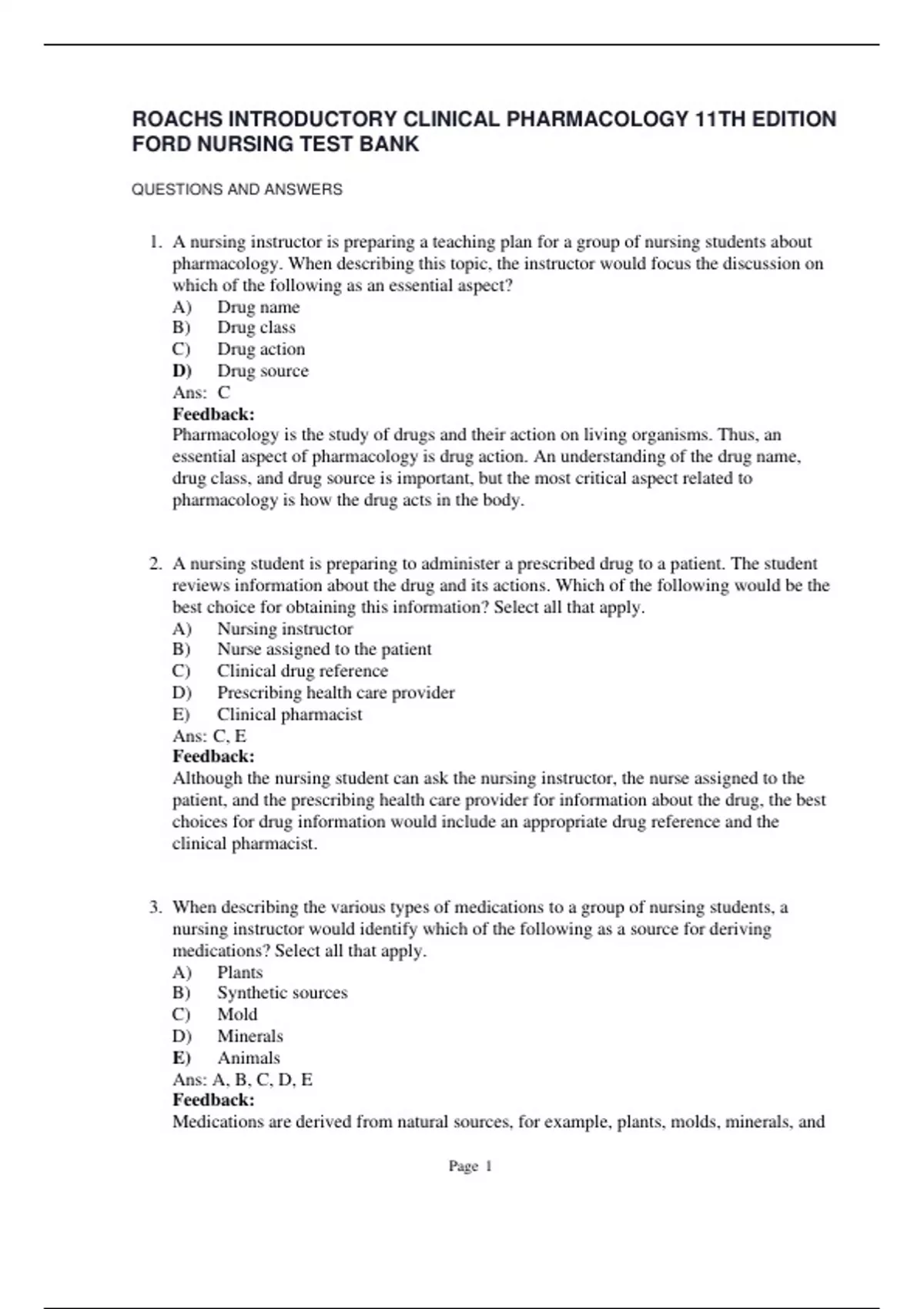 ROACHS INTRODUCTORY CLINICAL PHARMACOLOGY 11TH EDITION FORD NURSING TEST BANK QUESTIONS AND ANSWERS